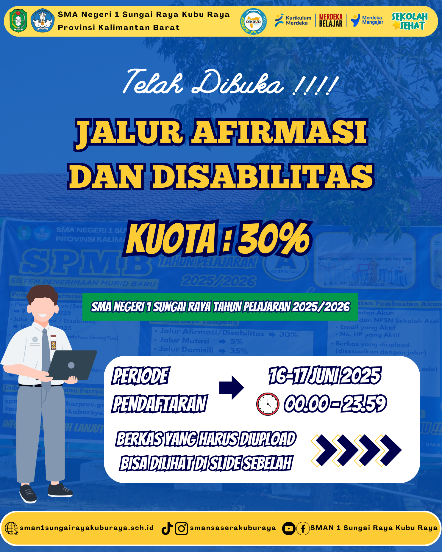 Telah Dibuka Pendaftaran Jalur Afirmasi/Disabilitas SPMB ONLINE SMAN 1 Sungai Raya Kab. Kubu Raya Tahun Pelajaran 2025/2026 !!!