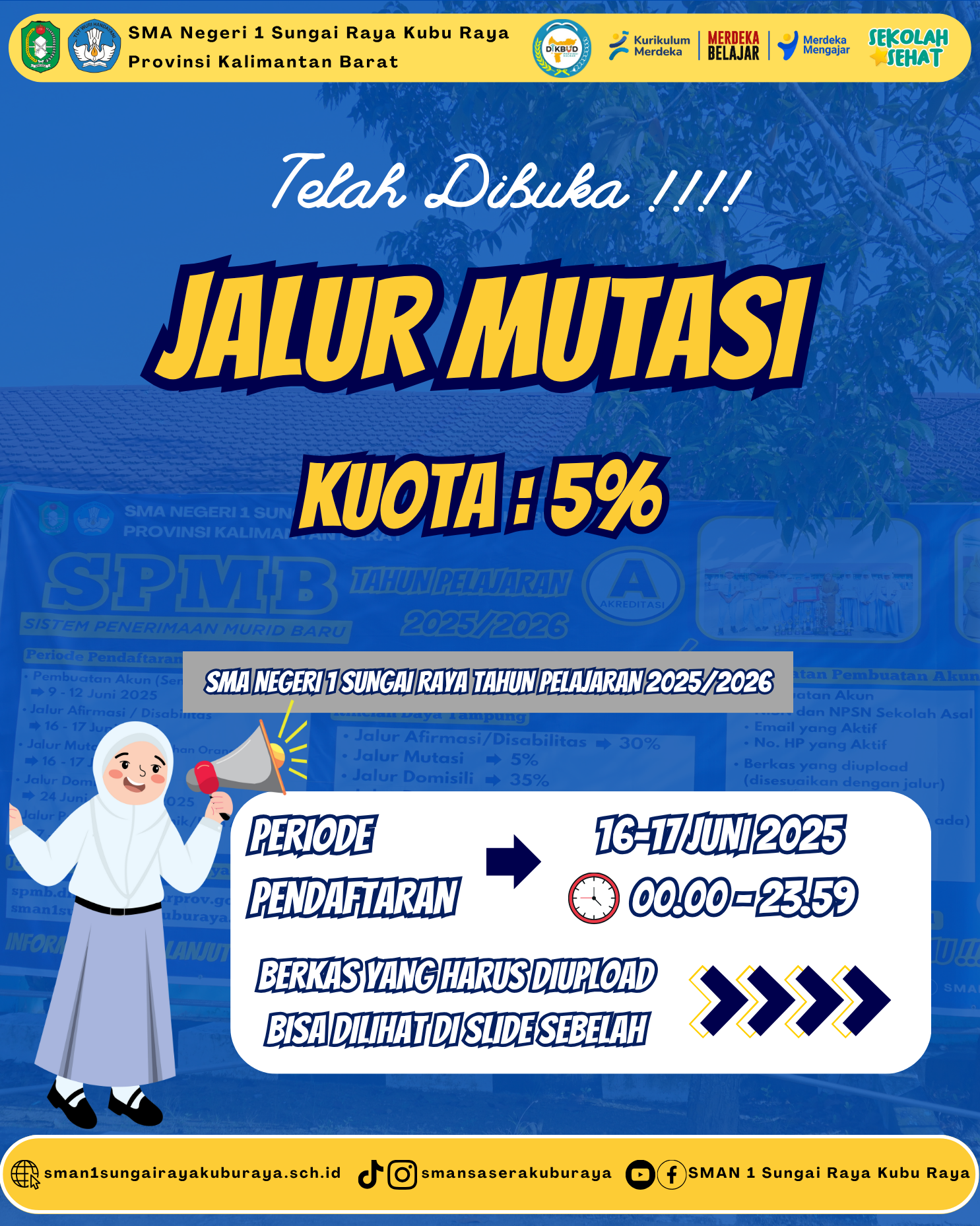 Persyaratan Daftar Ulang Offline Jalur Mutasi SPMB SMAN 1 Sungai Raya 2025/2026 !!! Selamat Bergabung di SMAN 1 Sungai Raya Periode Daftar Ulang : 20 ...