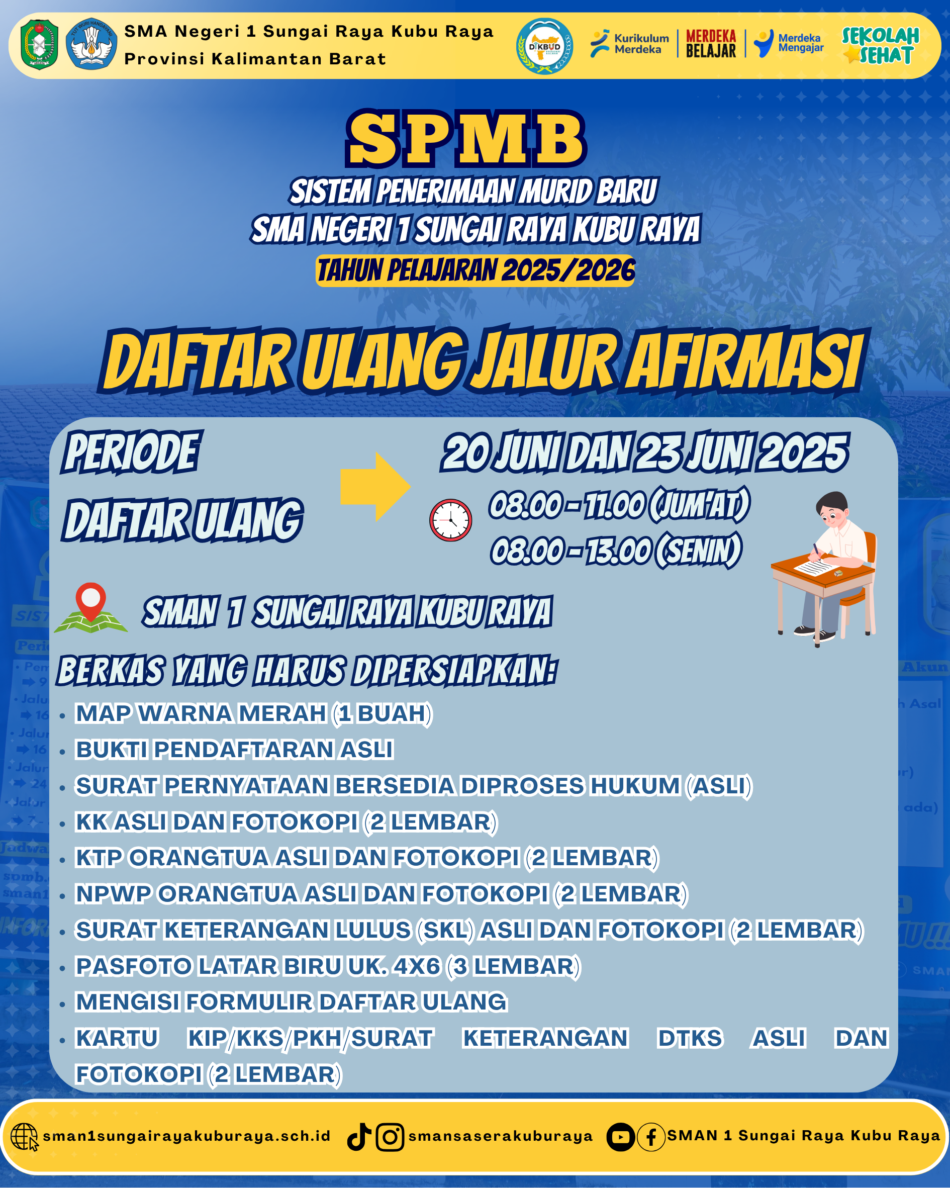 Persyaratan Daftar Ulang Offline Jalur Afirmasi SPMB SMAN 1 Sungai Raya 2025/2026 !!!
