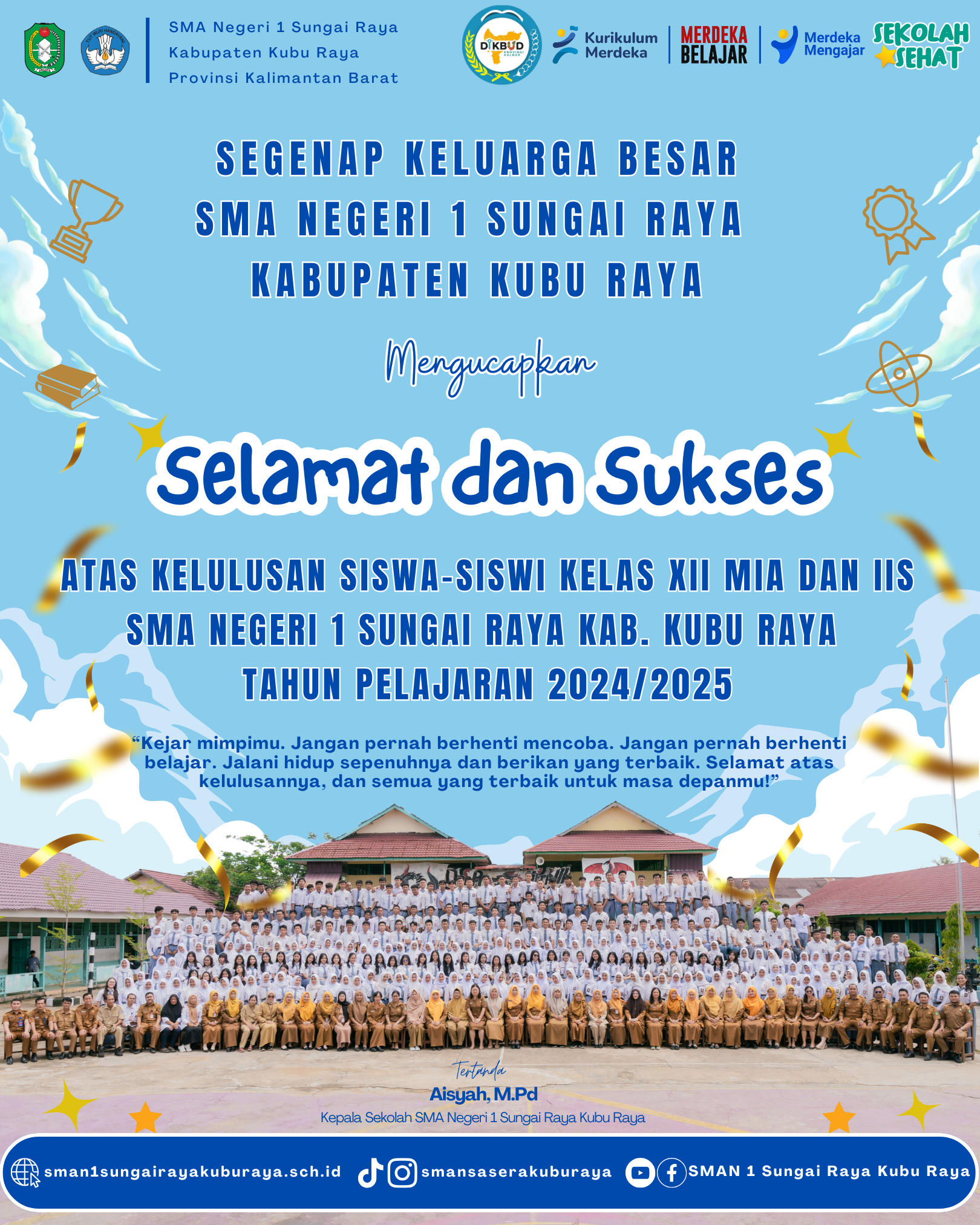 SELAMAT & SUKSES ATAS KELULUSAN KELAS XII MIA & IIS SMAN 1 SUNGAI RAYA KUBU RAYA TAHUN PELAJARAN 2024/2025 !!!