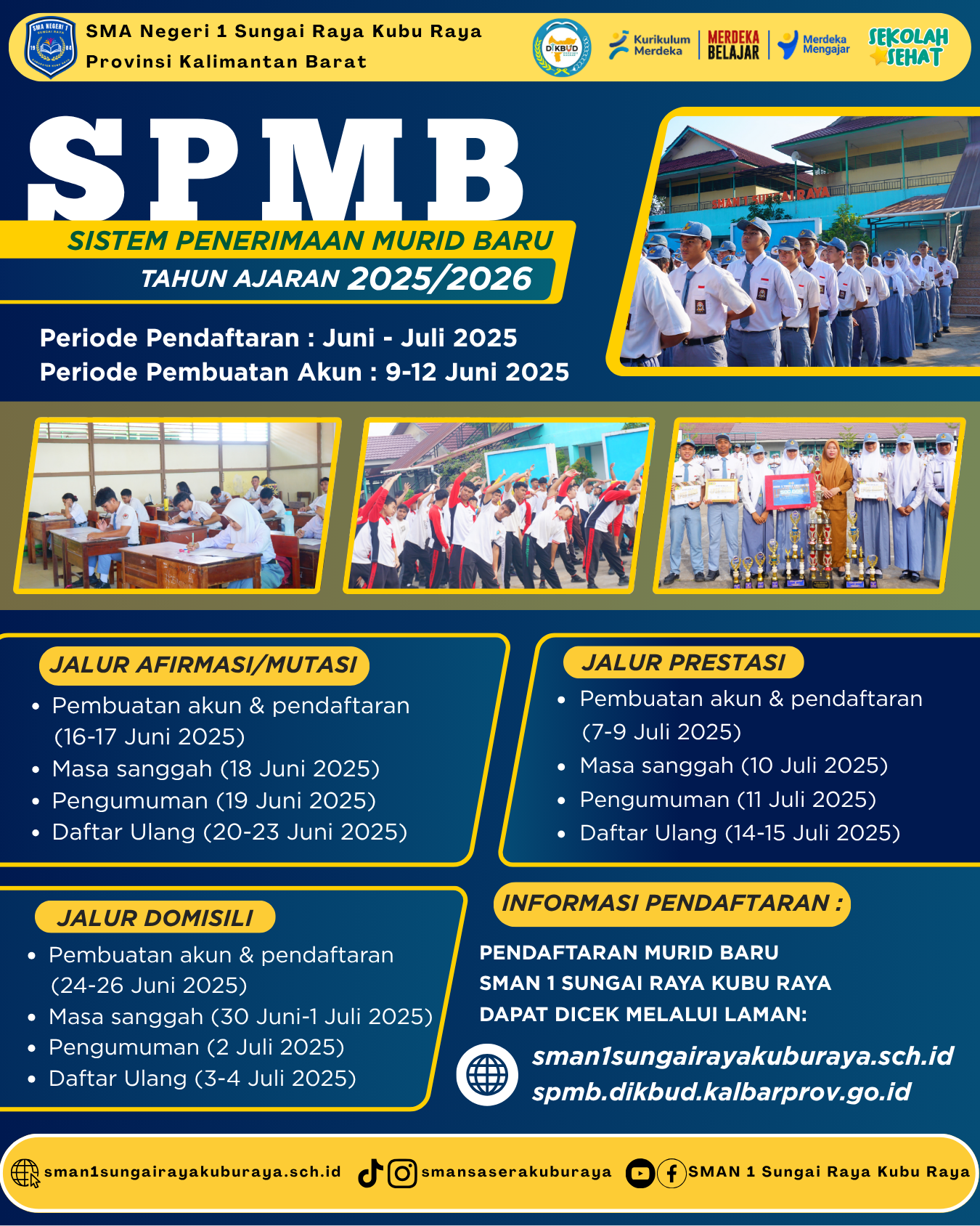 📢Pengumuman SPMB SMAN 1 Sungai Raya Kubu Raya Tahun Pelajaran 2025/2026 !!! Simak Jadwal Lengkapnya sesuai Jalur ya guyss🙏