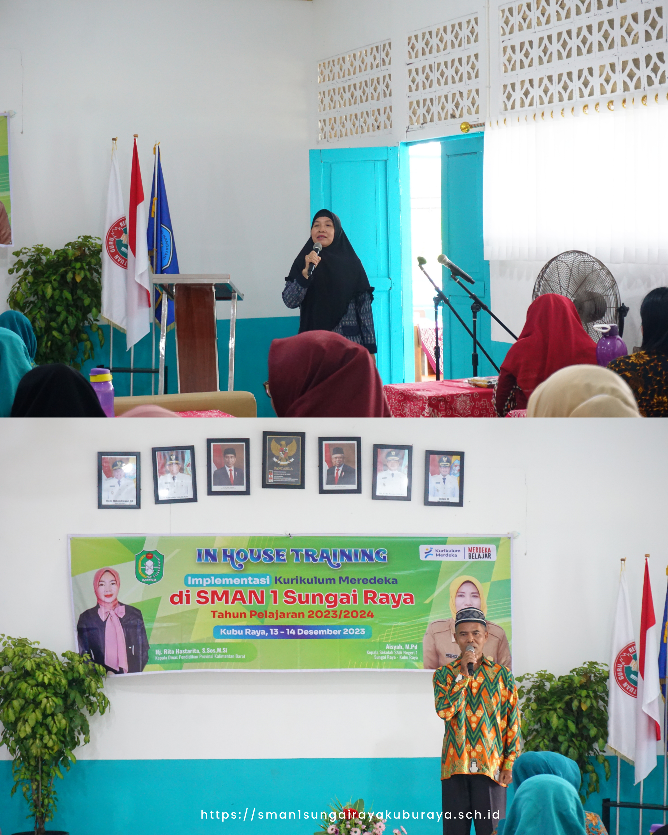 Hari Kedua Pelaksanaan In House Training (IHT) Implementasi Kurikulum Merdeka Tahun Pelajaran 2023/2034 dengan Tema "Proyek Penguatan Profil Pancasila - P5" yang diselenggarakan pada Hari Rabu-Kamis 13-14 Desember 2023 di Aula Ki Hajar Dewantara SMA Negeri 1 Sungai Raya Kab Kubu Raya. Pelaksanaan IHT ini juga dihadiri oleh :