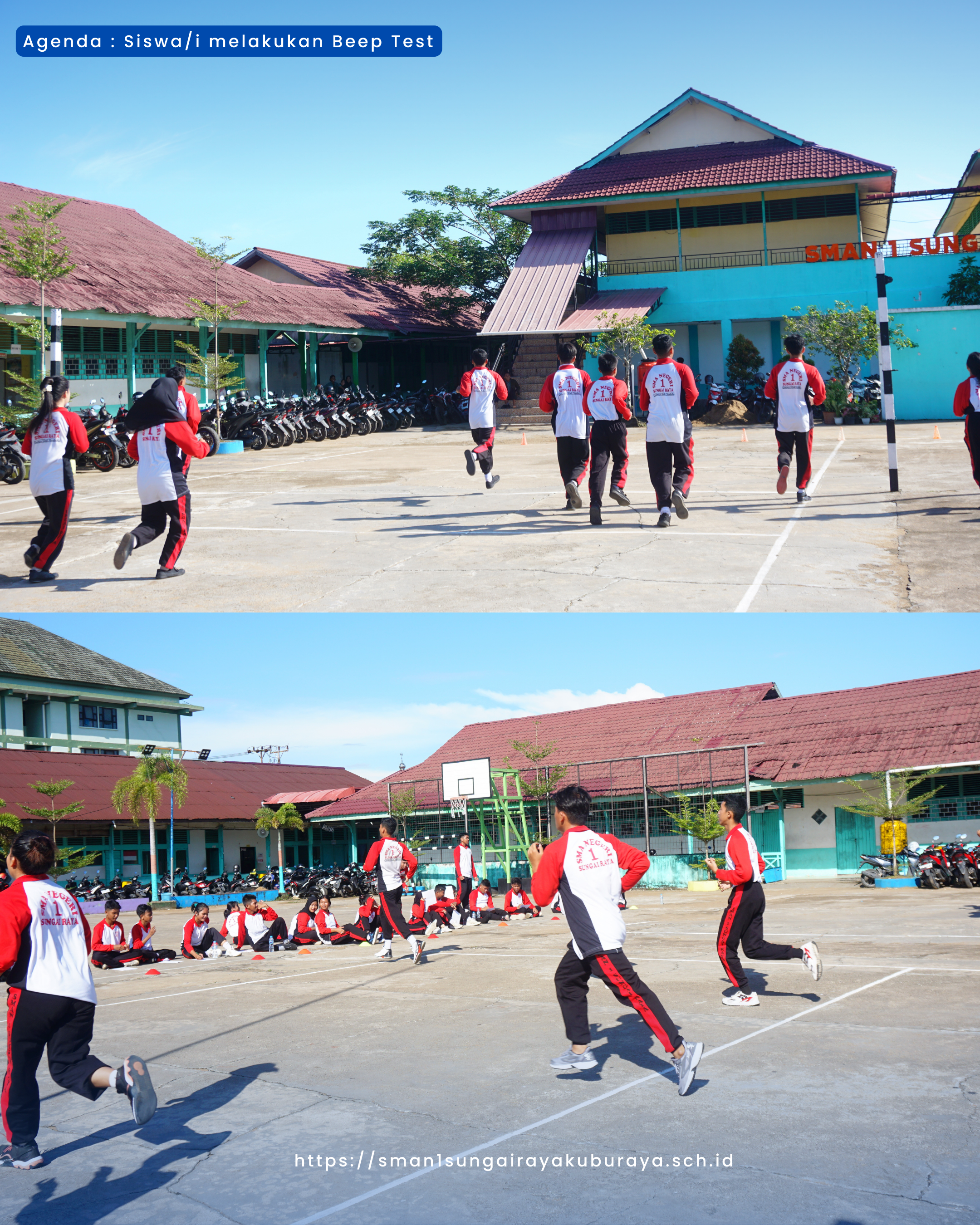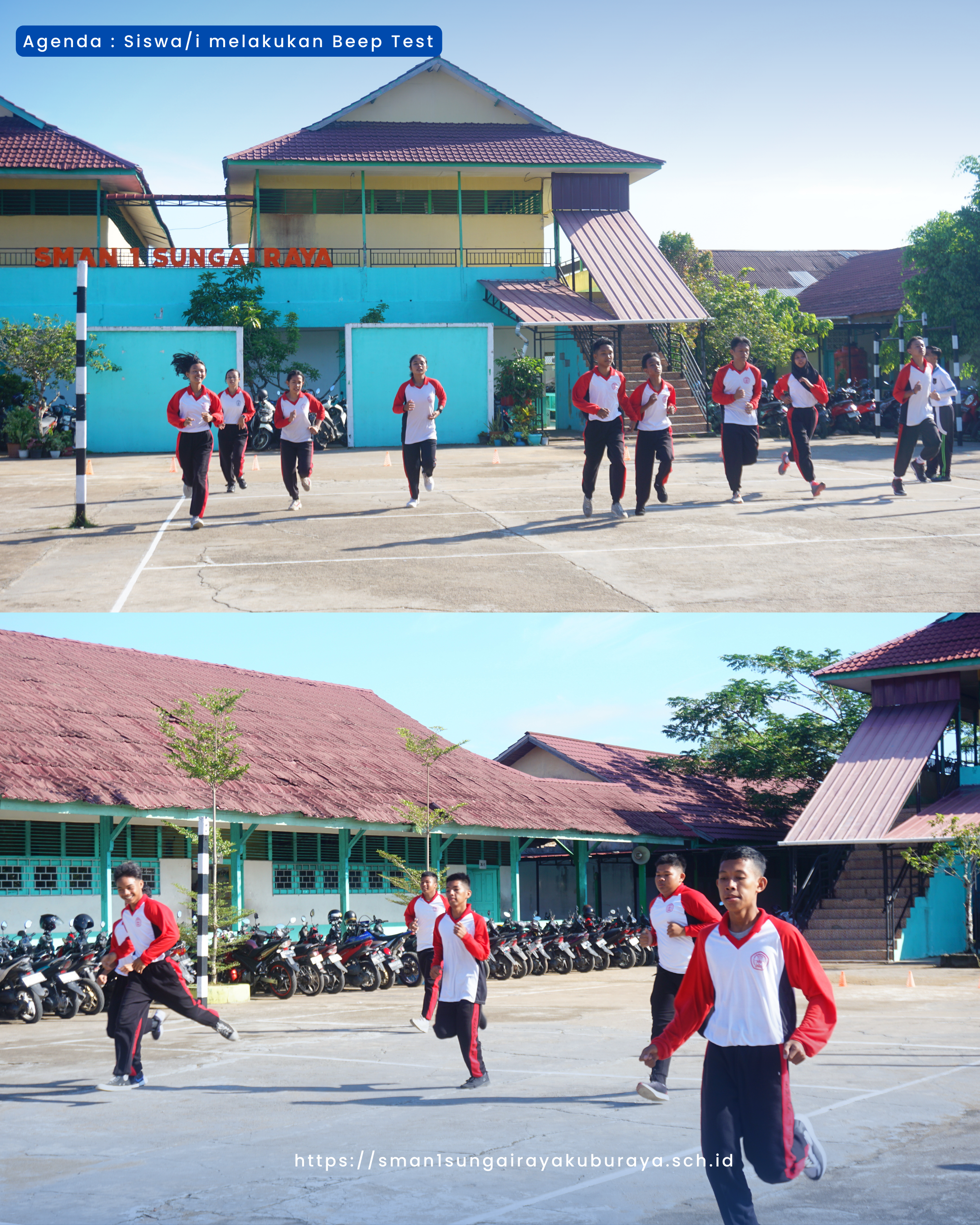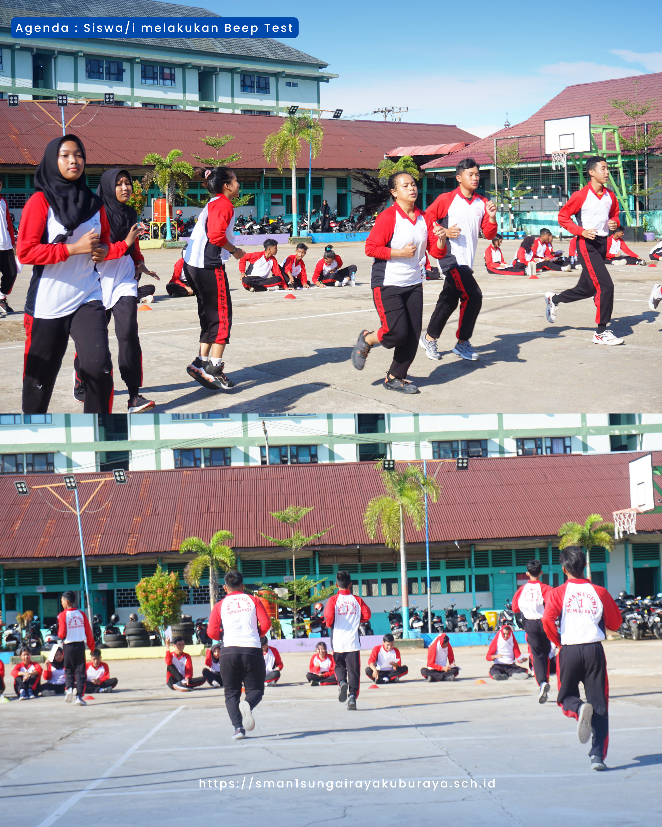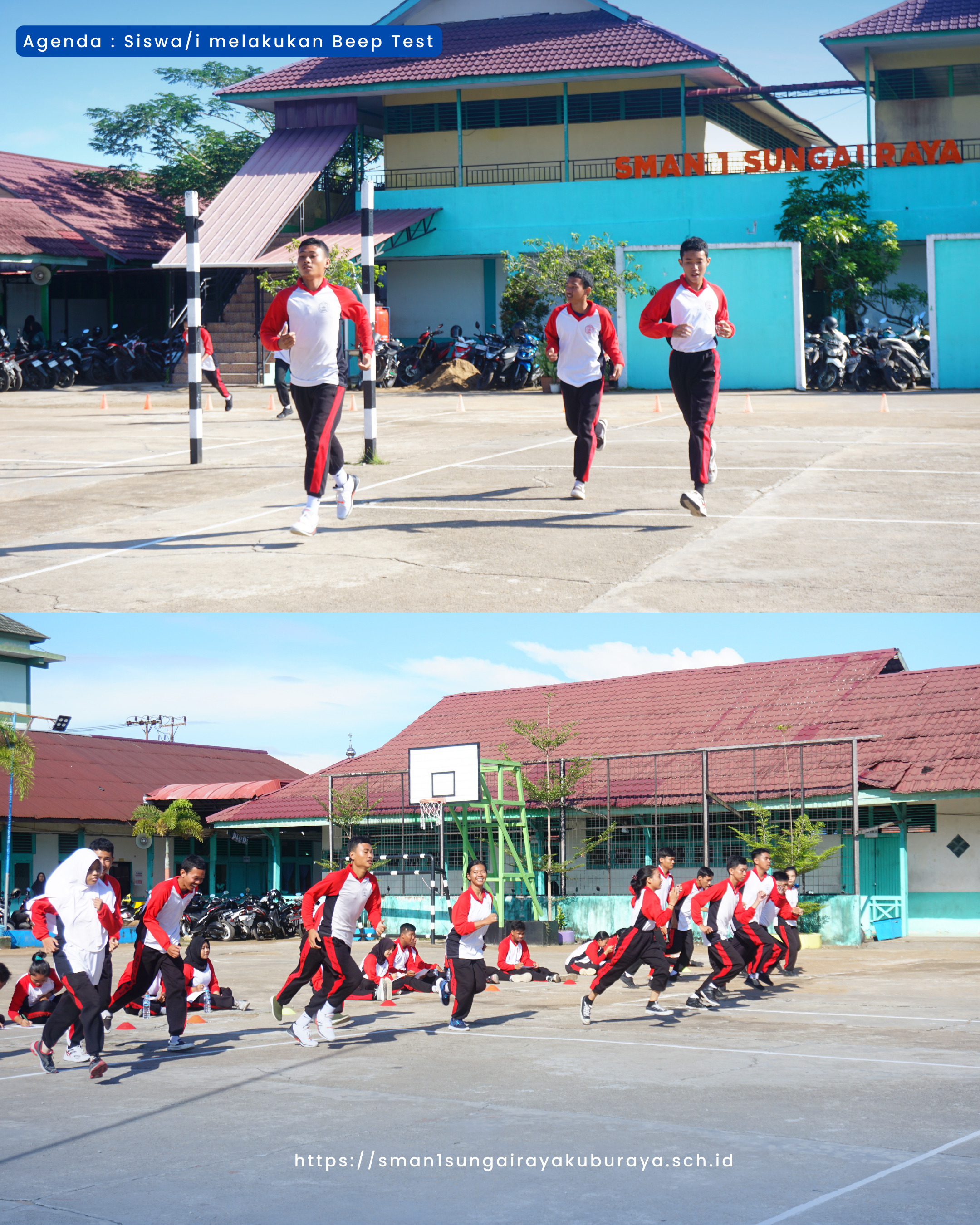 Kegiatan tes kebugaran ini di laksanakan pada hari Selasa,Rabu tanggal 7-8 November 2023 bertempat di halaman SMAN 1 Sungai Raya. Kegiatan ini diikuti oleh siswa – siswi XI MIA 1/2 sebanyak 40 orang yang dipimpin oleh Tim Sekolah Sehat. Kemudian Hari Kedua ini kedatangan dari Monev Kampanye Sekolah Sehat (KSS) yaitu Ibu Rostini selaku Tim Balai Penjamin Mutu Pendidikan (BPMP) dan melakukan sesi foto bersama Siswa/i Peserta Tes Kebugaran, Ibu Kepsek dan Tim Sekolah Sehat serta Ibu Rostini Monev KSS. Pada hari Rabu 8 November 2023 ini selanjutnya ada berbagai Test Kebugaran yang dilakukan yaitu :