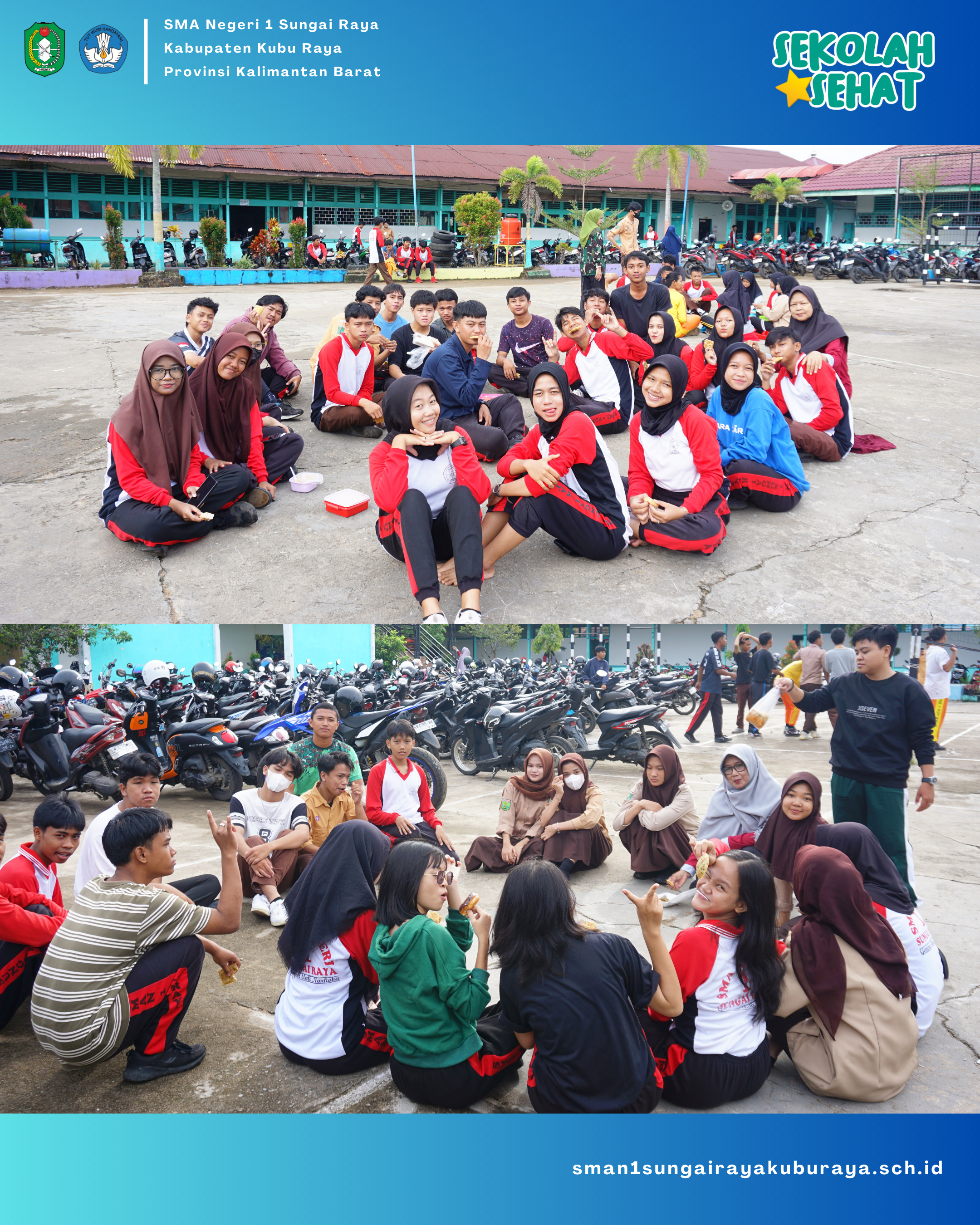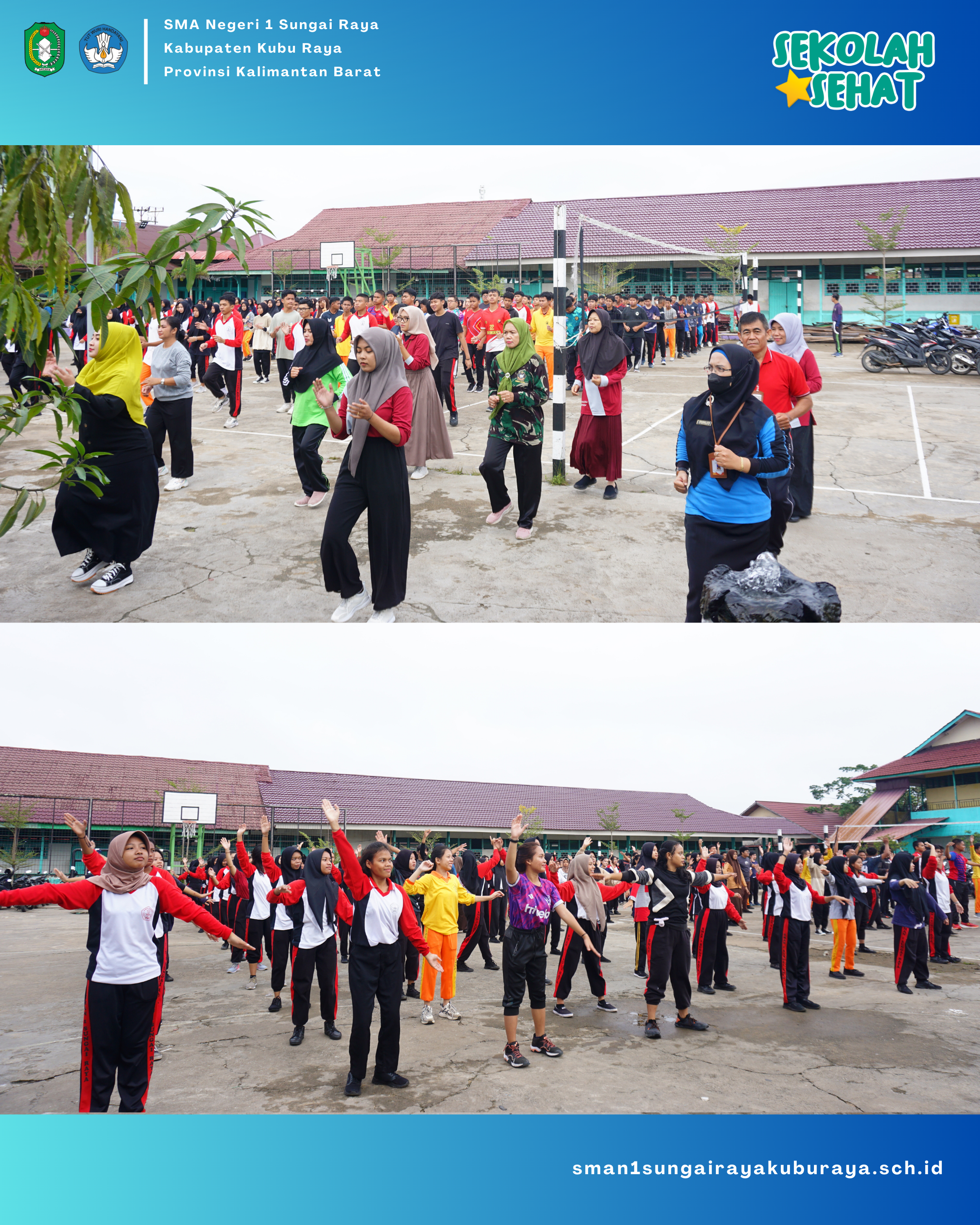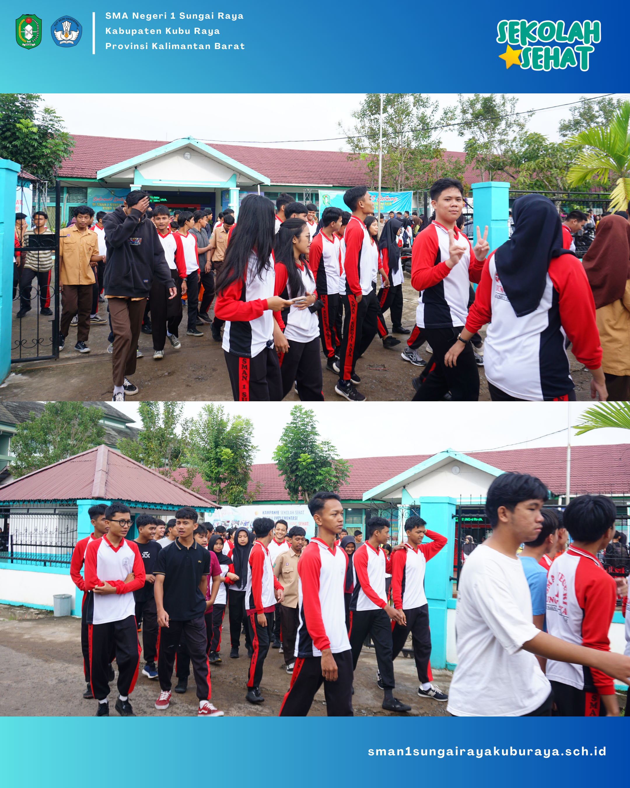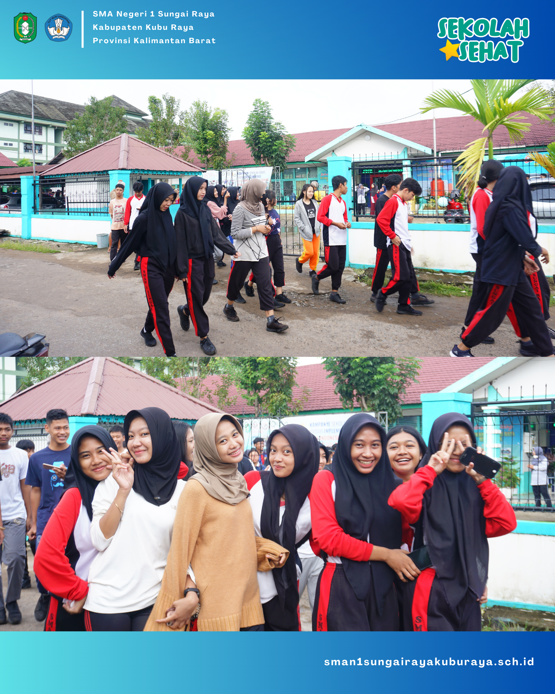 Berkenaan dengan Program Kampanye Sekolah Sehat Siswa/Siswi beserta Para Dewan Guru serta guru PPL dan Staff Tata Usaha SMA Negeri 1 Sungai Raya Kubu Raya melakukan Kegiatan Jalan Sehat, Senam Sehat bersama dan Sarapan Sehat bersama. Kampanye Sekolah Sehat (KSS) merupakan segala upaya yang dilakukan secara bersama-sama dan terus menerus oleh semua pihak mulai dari pemerintah pusat sampai ke pemerintah daerah, para mitra, satuan pendidikan, masyarakat pemangku kepentingan lainnya tentang pentingnya penerapan Sekolah Sehat dengan berfokus pada Sehat Bergizi, Sehat Fisik dan Sehat Imunisasi di satuan pendidikan.