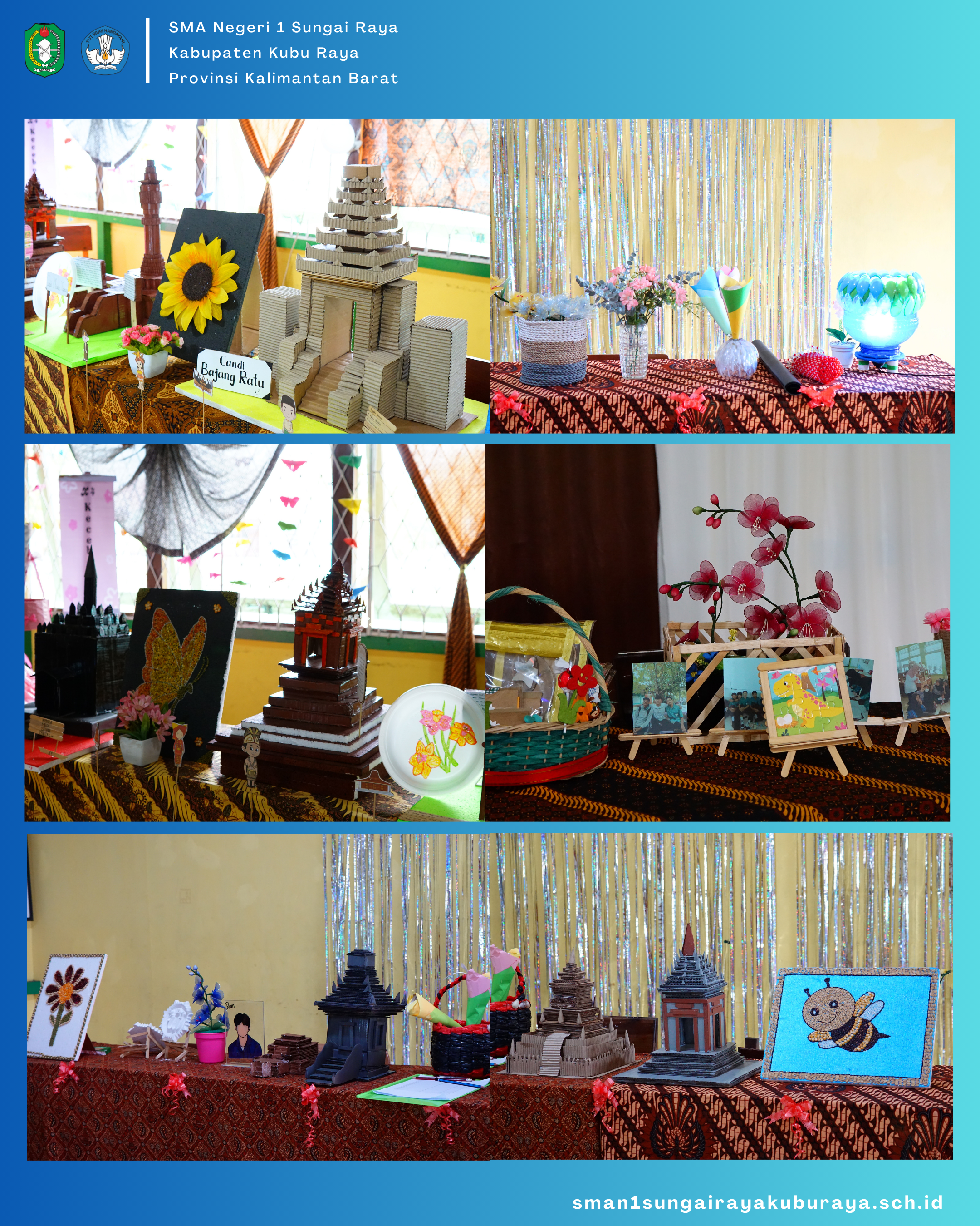 Kunjungan Kepala Dinas Pendidikan dan Kebudayaan Prov.Kalbar Ibu Rita Hastarita, S.Sos, M.Si ke Pameran Stand Siswa dalam Acara Gelar Karya "Projek Penguatan Profil Pelajar Pancasila" di SMA Negeri 1 Sungai Raya yang menyajikan berbagai macam makanan dan minuman serta Pameran Kerajinan dari Sampah Plastik dan Koran dll yang di daur ulang.