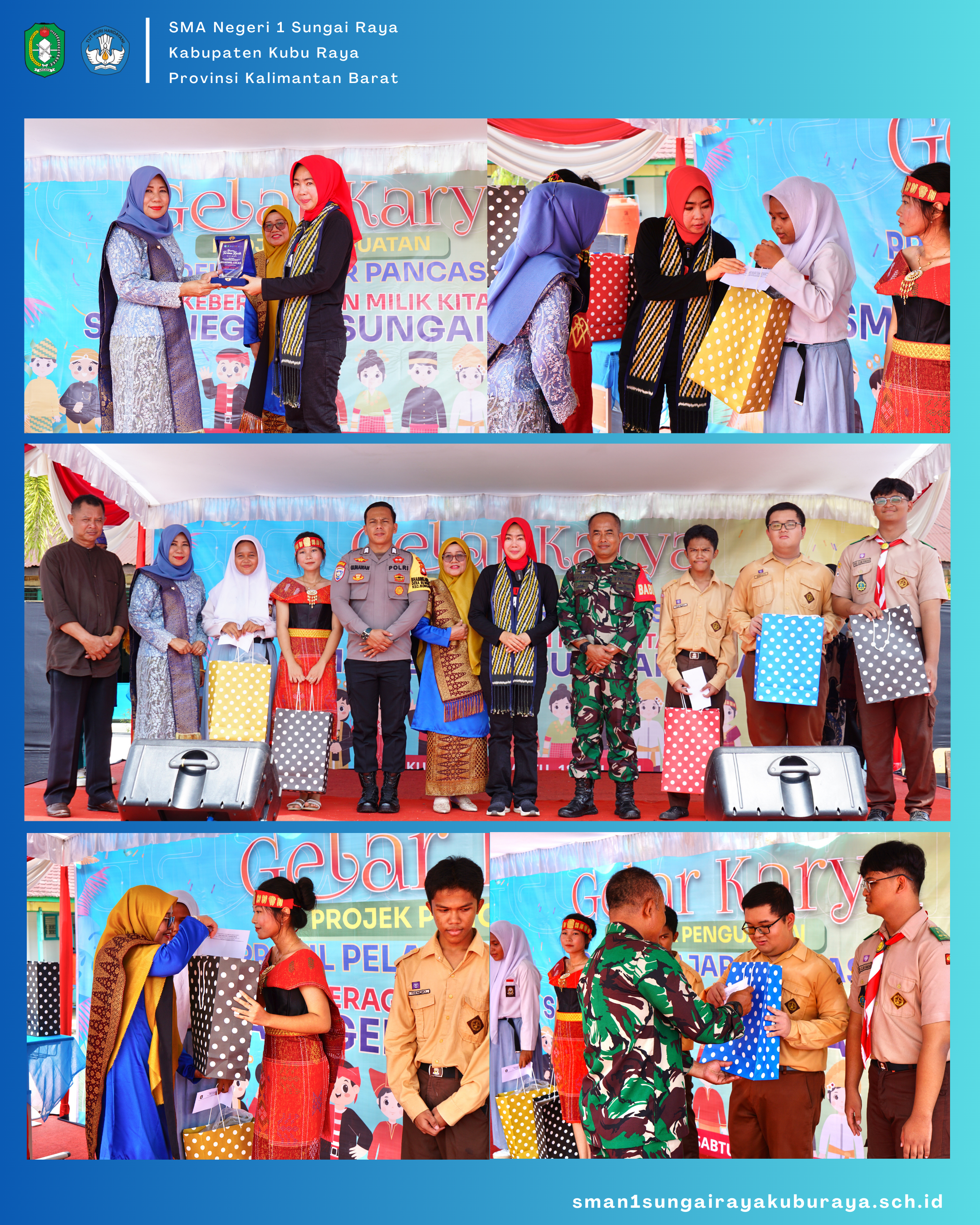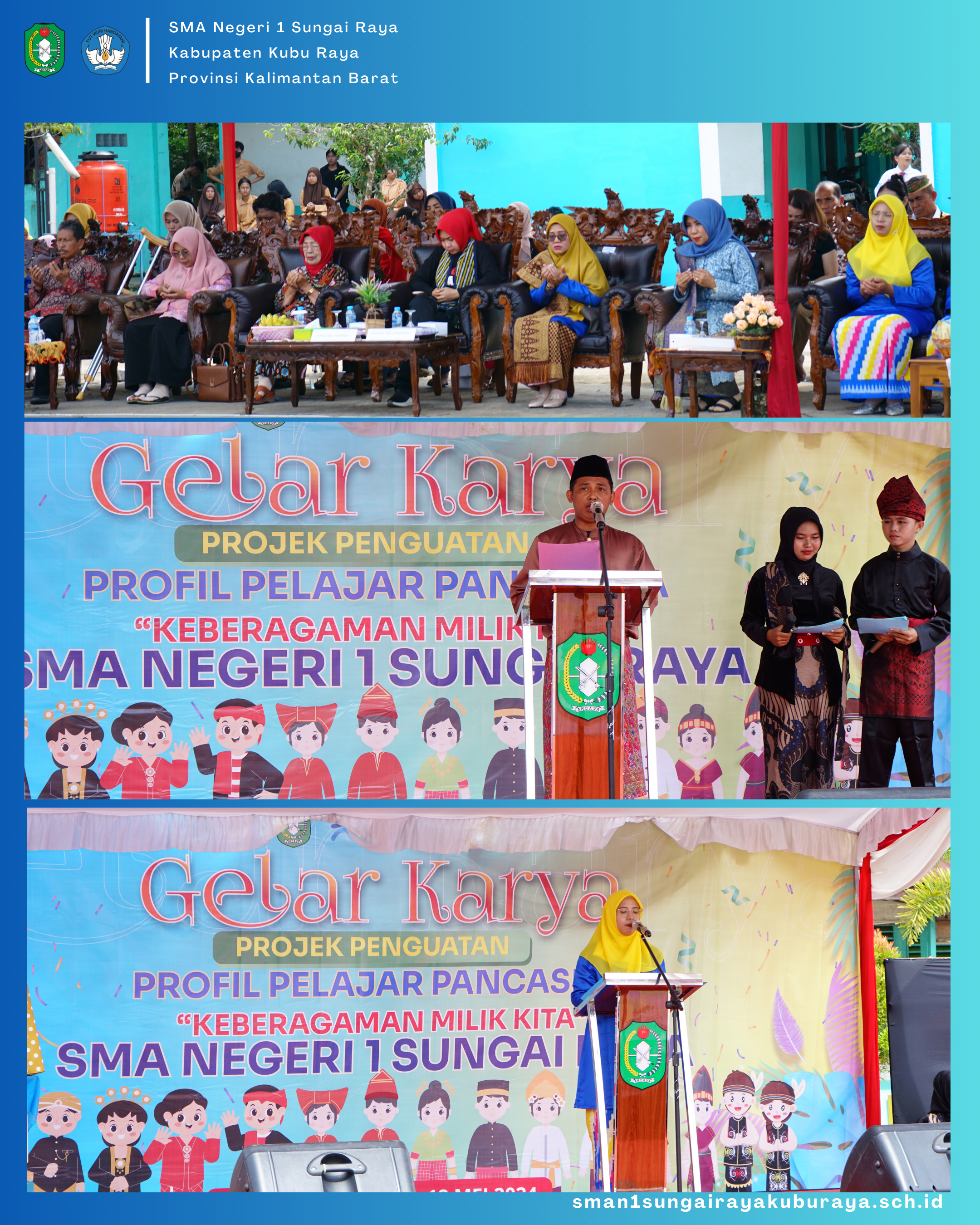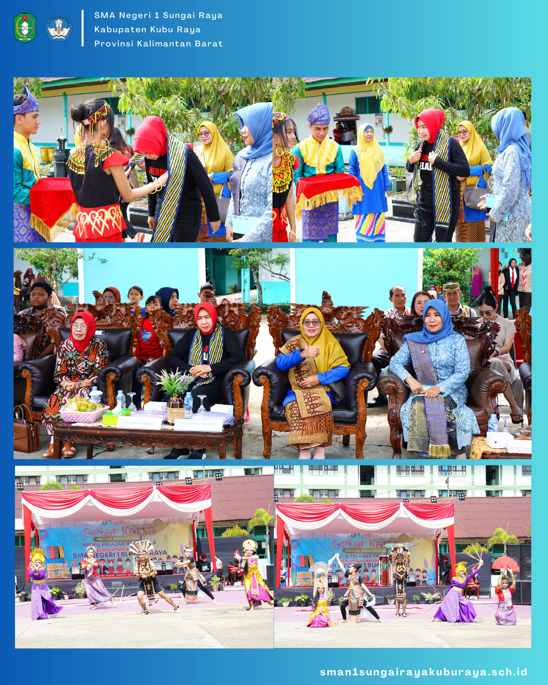 Berkenaan dengan Pembukaan Acara Gelar Karya "Projek Penguatan Profil Pelajar Pancasila" SMA Negeri 1 Sungai Raya yang diselenggarakan di Halaman Utama SMAN 1 Sungai Raya Kubu Raya, Kalimantan Barat. Pada Acara Kali ini kami turut mengundang Perwakilan Sejumlah Pejabat dan Kepala Sekolah dari Kubu Raya serta Prov. Kalimantan Barat. Rangkaian Acara Kegiatan Gelar Karya P5 ini sebagai berikut :