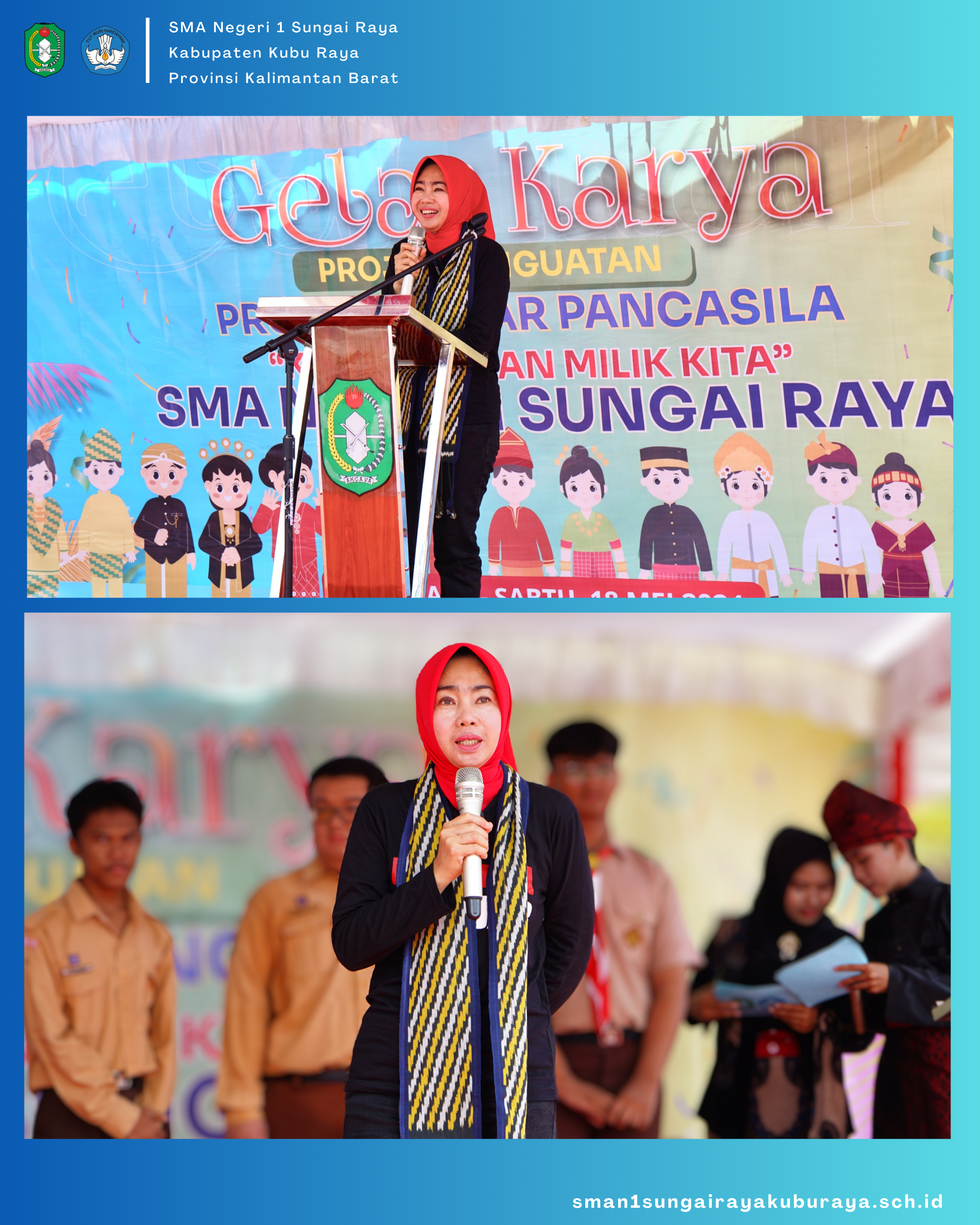 3. Kata Sambutan dari Ketua Panitia Gelar Karya P5 SMAN 1 Sungai Raya, Bu Indah Nofriani, S.Pd