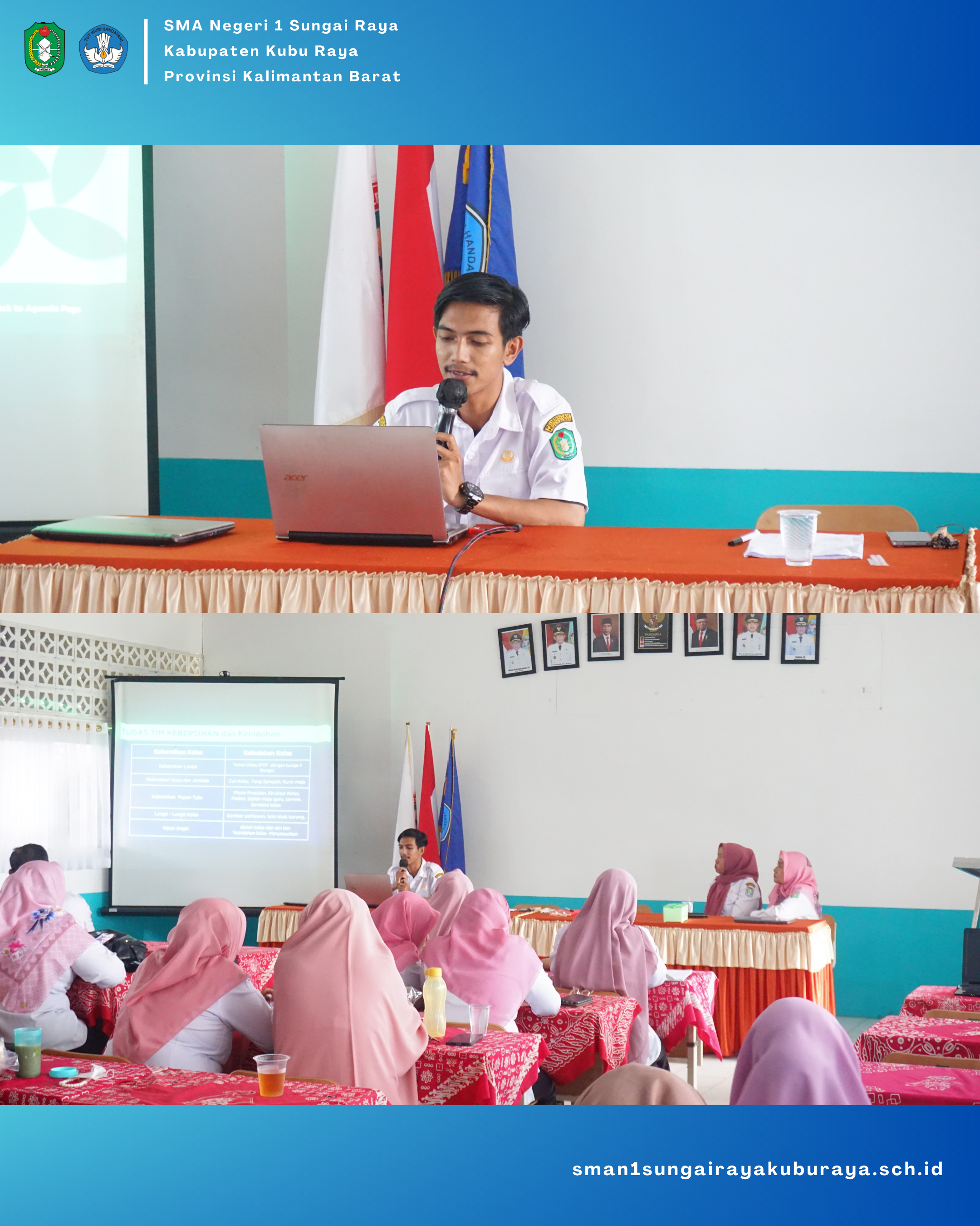 Kegiatan Rapat Dinas Rutin ini dilaksanakan pada hari Rabu, 7 Februari 2024 Pukul 10.20 - selesai yang dipimpin oleh Kepala Sekolah dan juga Wakil Kepala Sekolah beserta para hadirin Bapak/Ibu Dewan Guru, Analis Kepegawaian/serta Staff SMAN 1 Sungai Raya yang diselenggarakan di Ruang Aula Ki Hajar Dewantara SMA Negeri 1 Sungai Raya Kabupaten Kubu Raya. Rapat Dinas kali ini membahas Tentang Diskusi mengenai Sarana dan Prasarana Sekolah, Persiapan Penilaian Sumatif 2024 dan Program dari Kampanye Sekolah Sehat (KSS) Mengenai Adanya Lomba Kebersihan Sekolah dan Kebersihan serta Keindahan Kelas masing-masing.