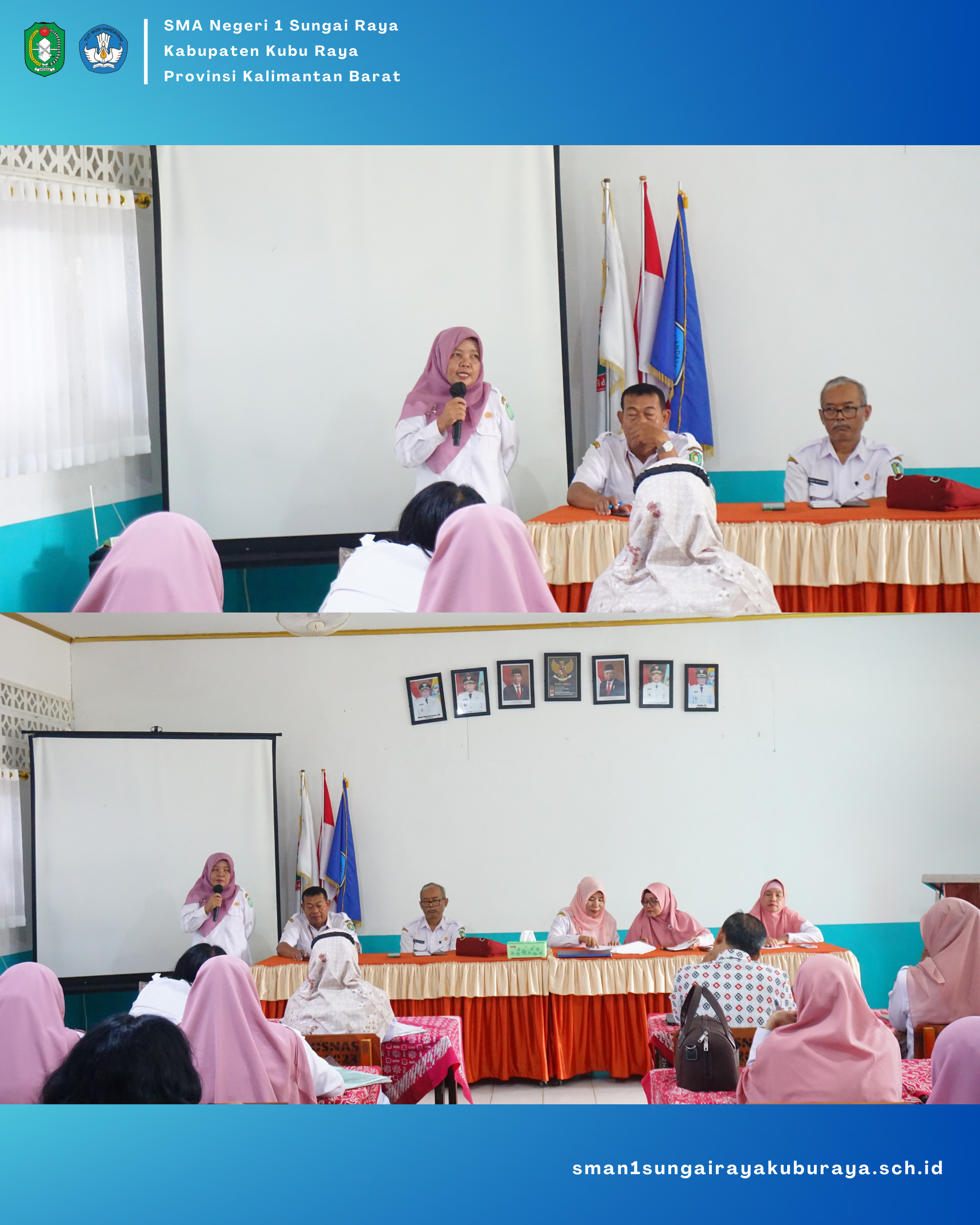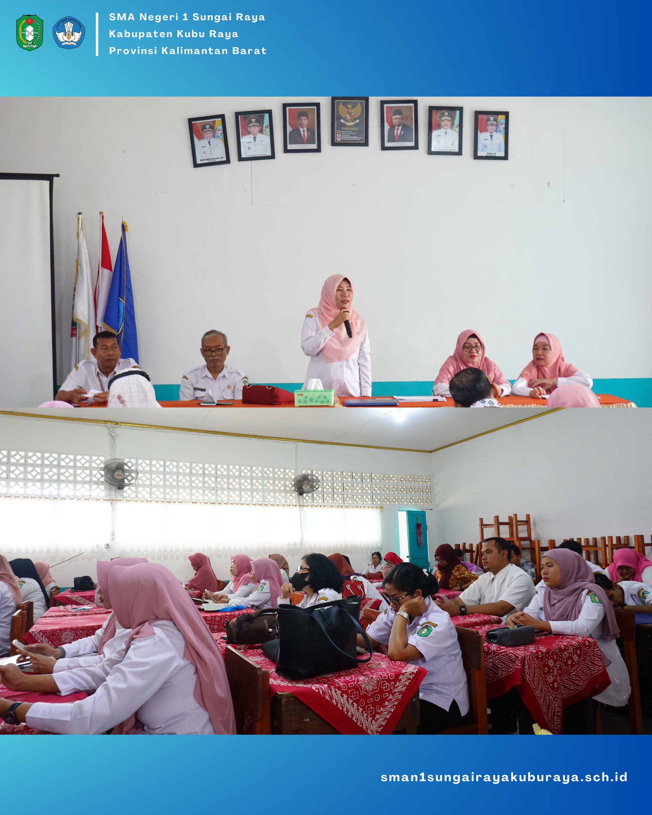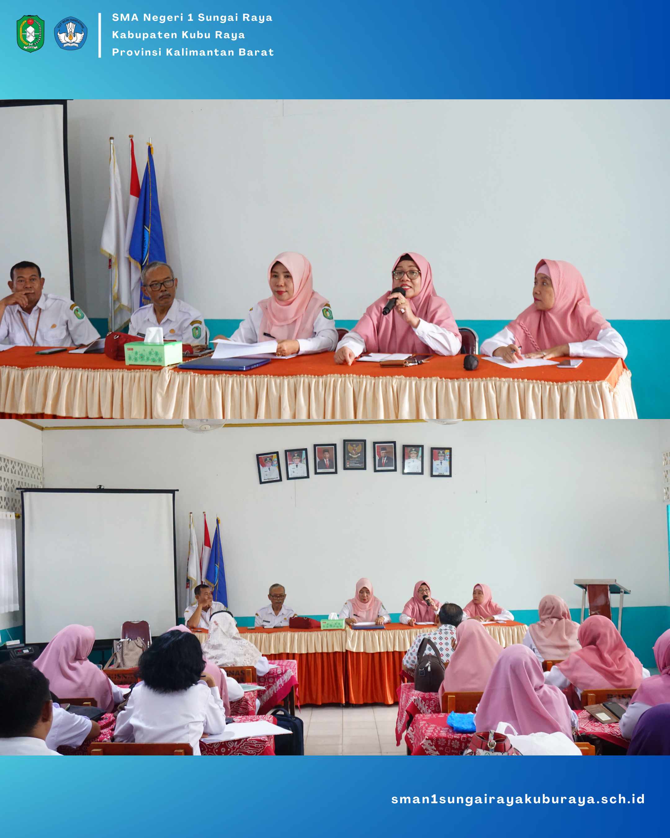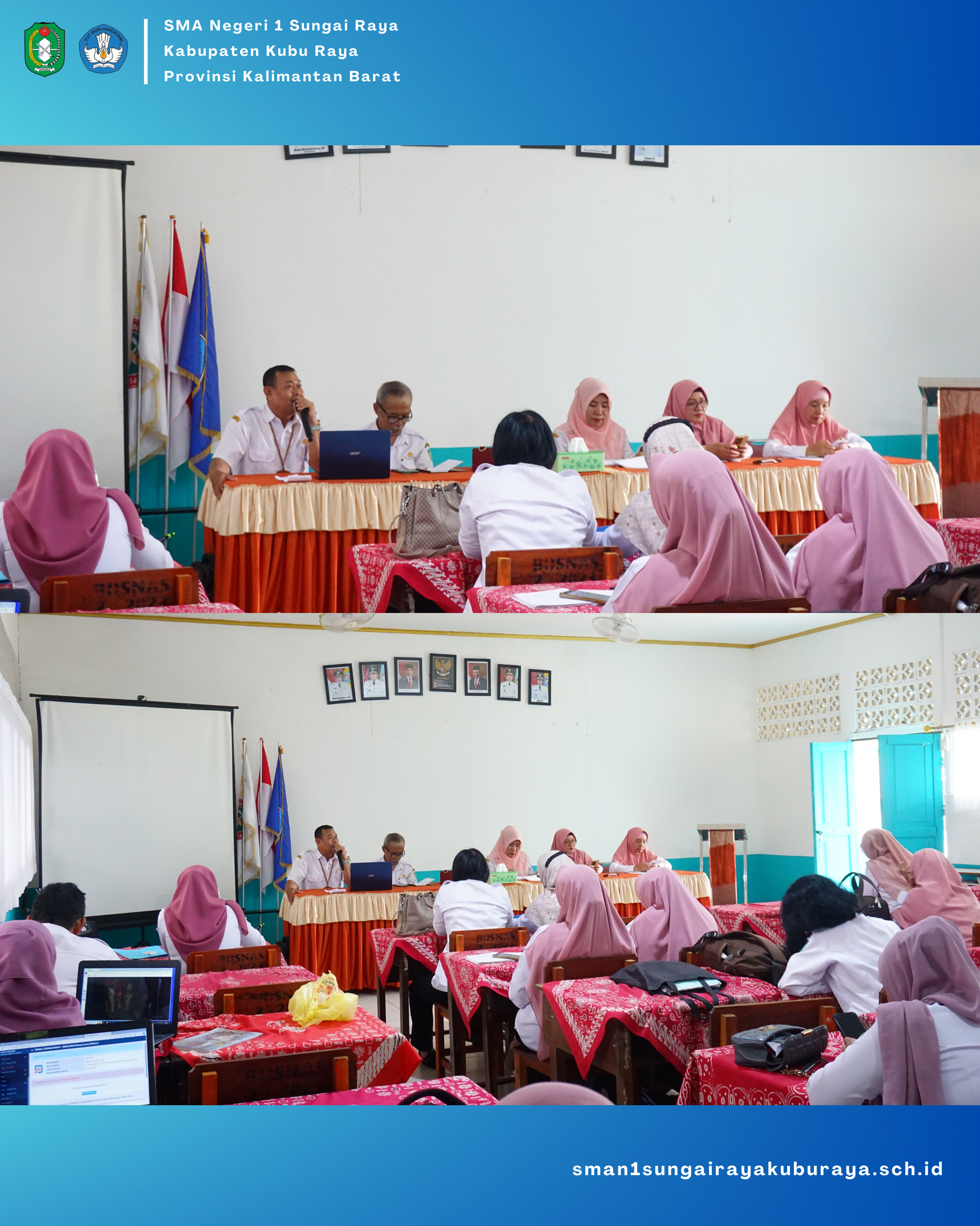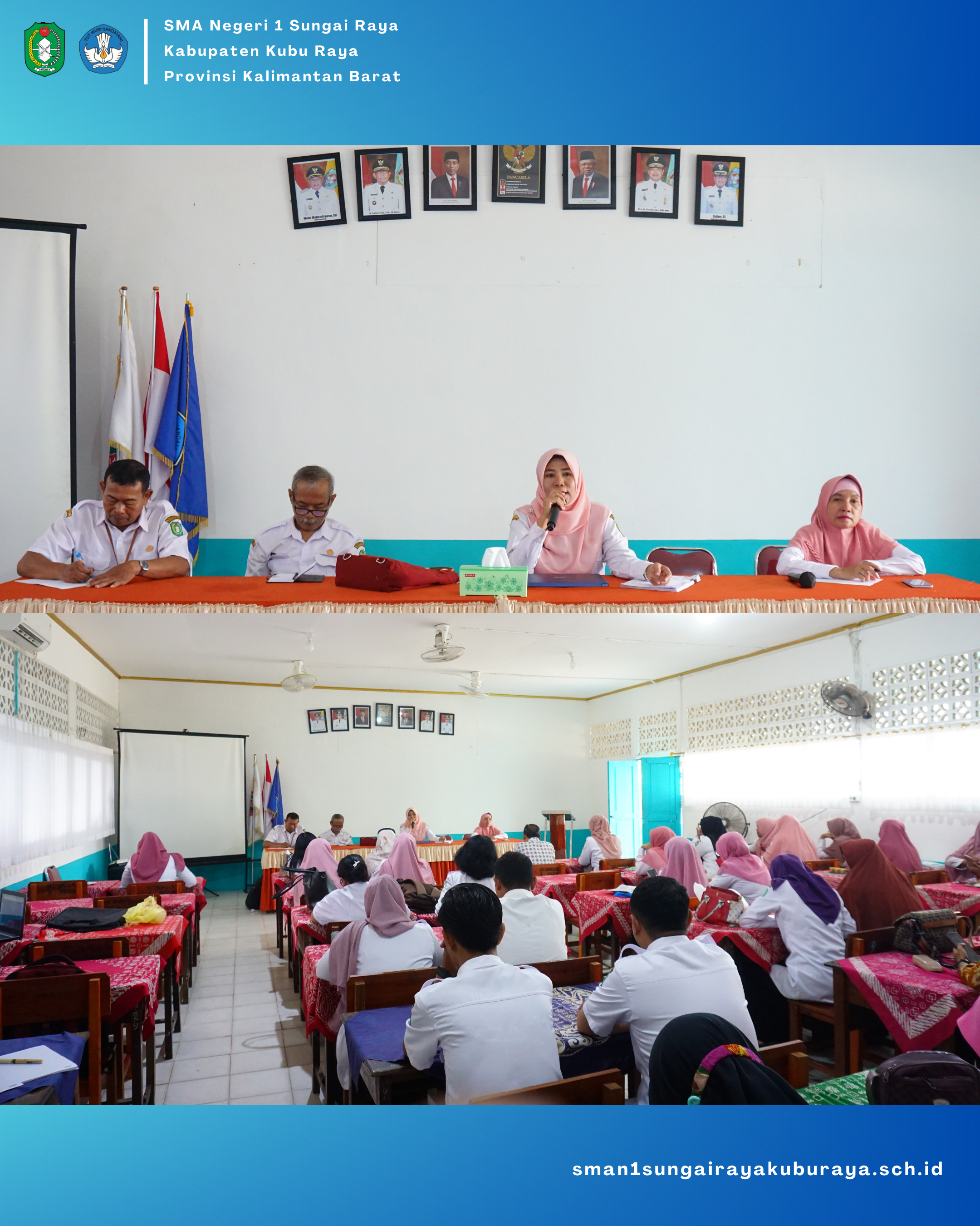 Kegiatan Rapat Dinas Rutin ini dilaksanakan pada hari Rabu, 13 Maret 2024 Pukul 09.00 - selesai yang dipimpin oleh Kepala Sekolah Ibu Aisyah, M.Pd dan juga Wakil Kepala Sekolah, Ibu Sri Suyanti, S.Pd, M.Si beserta para hadirin Bapak/Ibu Dewan Guru, Analis Kepegawaian/serta Staff SMAN 1 Sungai Raya yang diselenggarakan di Ruang Aula Ki Hajar Dewantara SMA Negeri 1 Sungai Raya Kabupaten Kubu Raya. Rapat Dinas kali ini dibuka dengan :