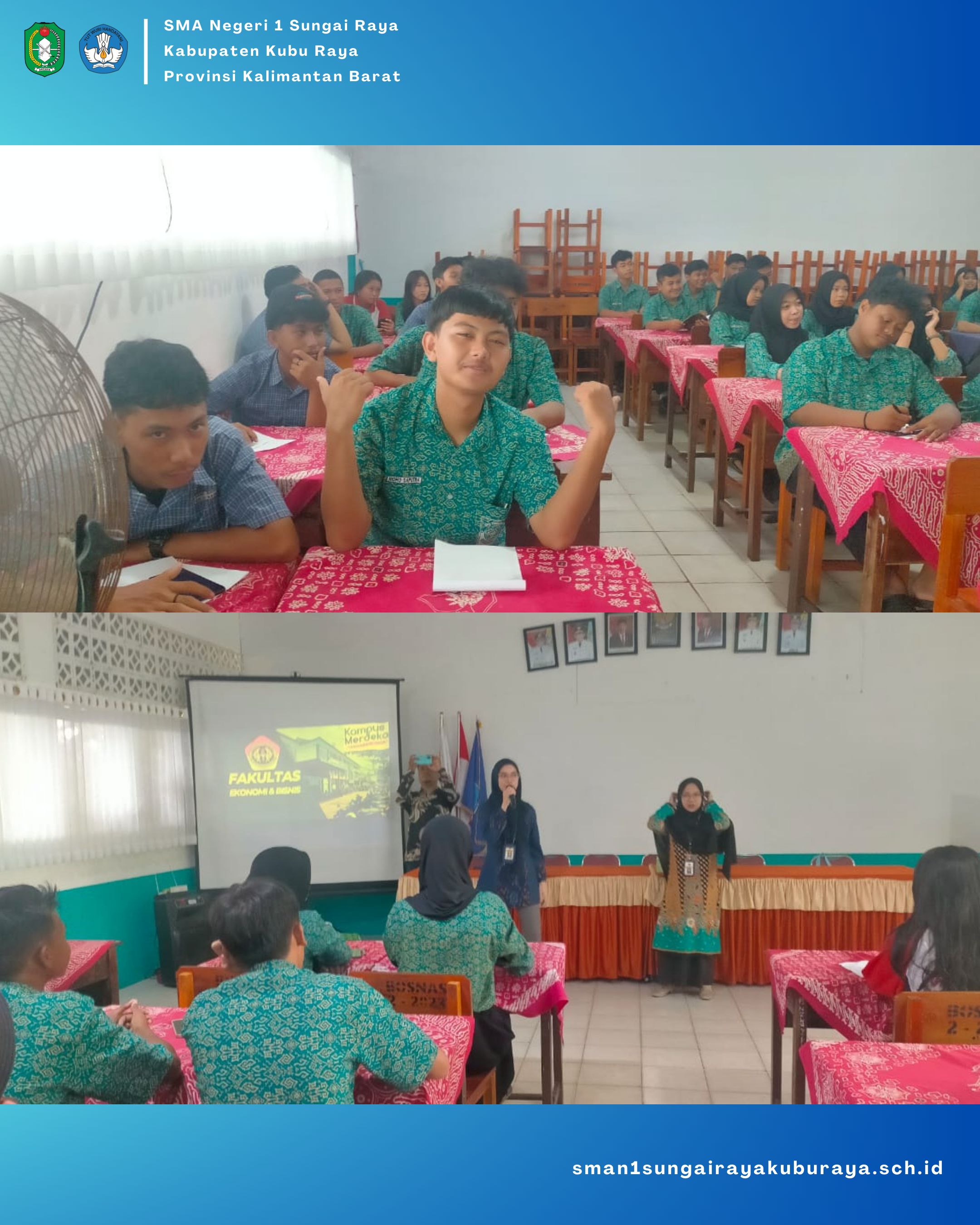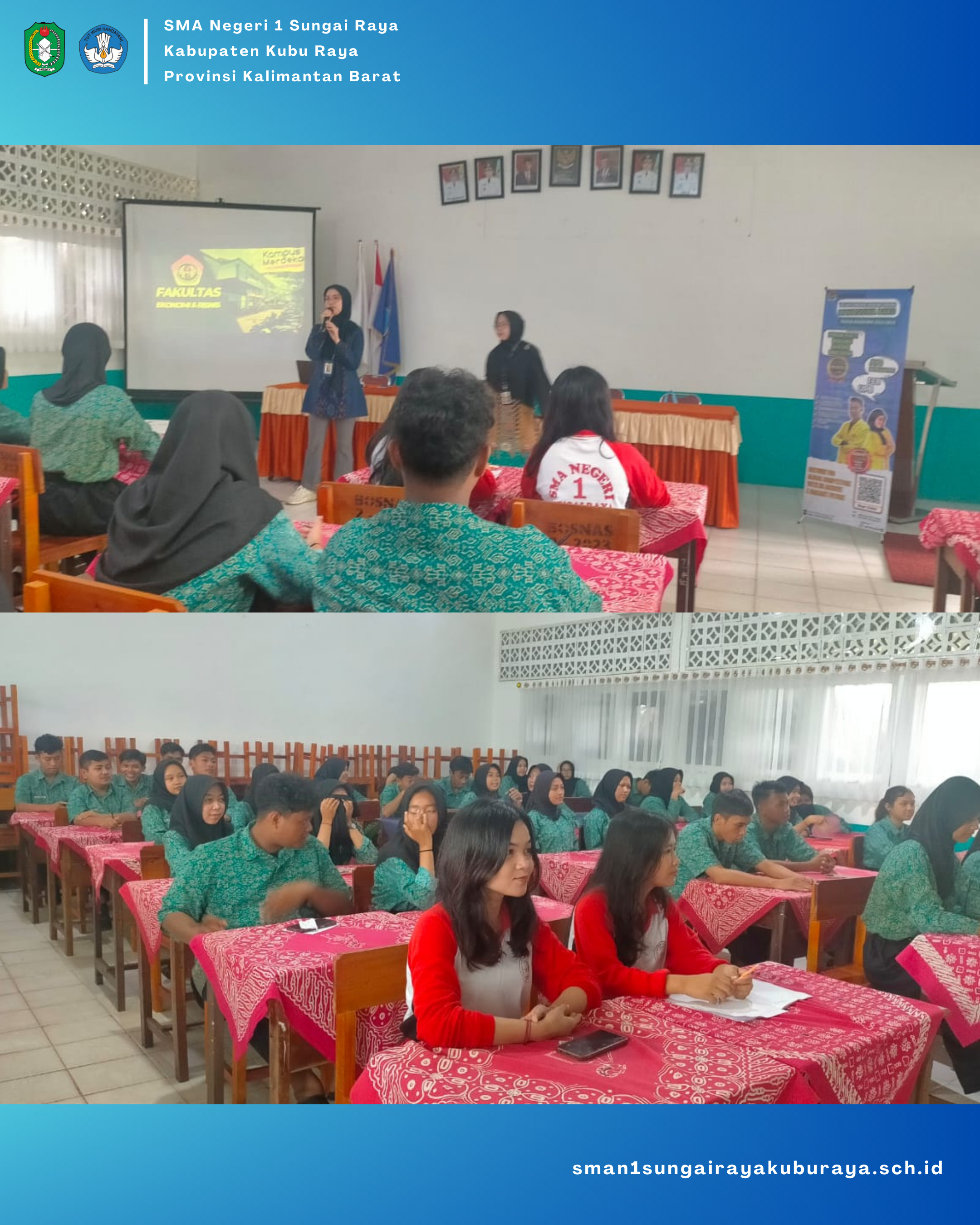 Sosialisasi dari Fakultas Ekonomi Universitas Panca Bhakti Kalimantan Barat bagi para siswa/siswi kelas XI MIA dan IIS SMAN 1 Sungai Raya dibimbing langsung oleh Perwakilan Fakultas Ekonomi UPB KalBar yang dilaksanakan pada Hari Rabu, 6 Maret 2024 pada pukul 14.00 - selesai di Aula Ki Hajar Dewantara SMA Negeri 1 Sungai Raya Kubu Raya.