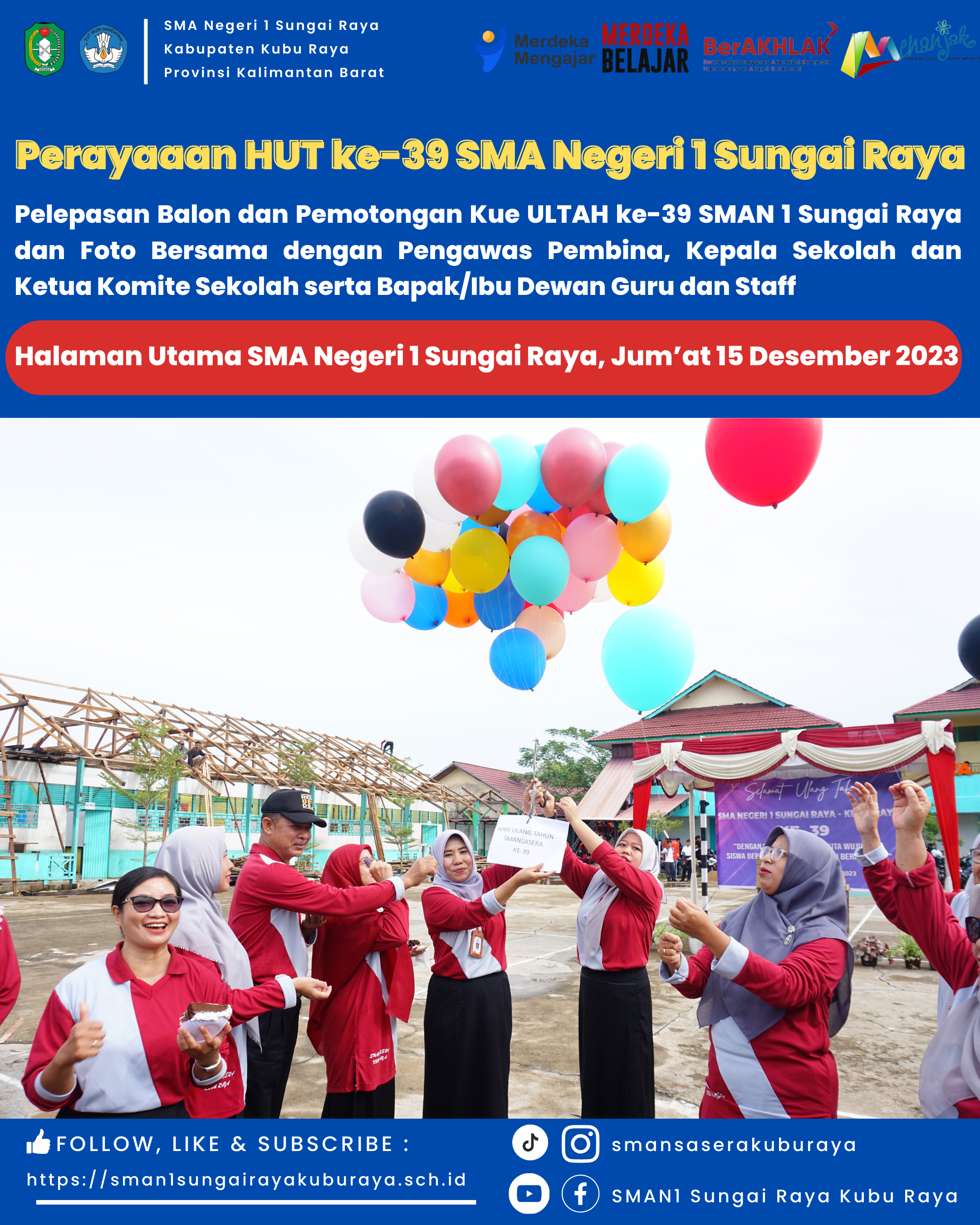 Kubu Raya, Jum'at 15 Desember 2023 Acara Selanjutnya yaitu Pelepasan Balon dan Pemotongan Kue dalam rangka Perayaan Hari Ulang Tahun ke-39 SMA Negeri...
