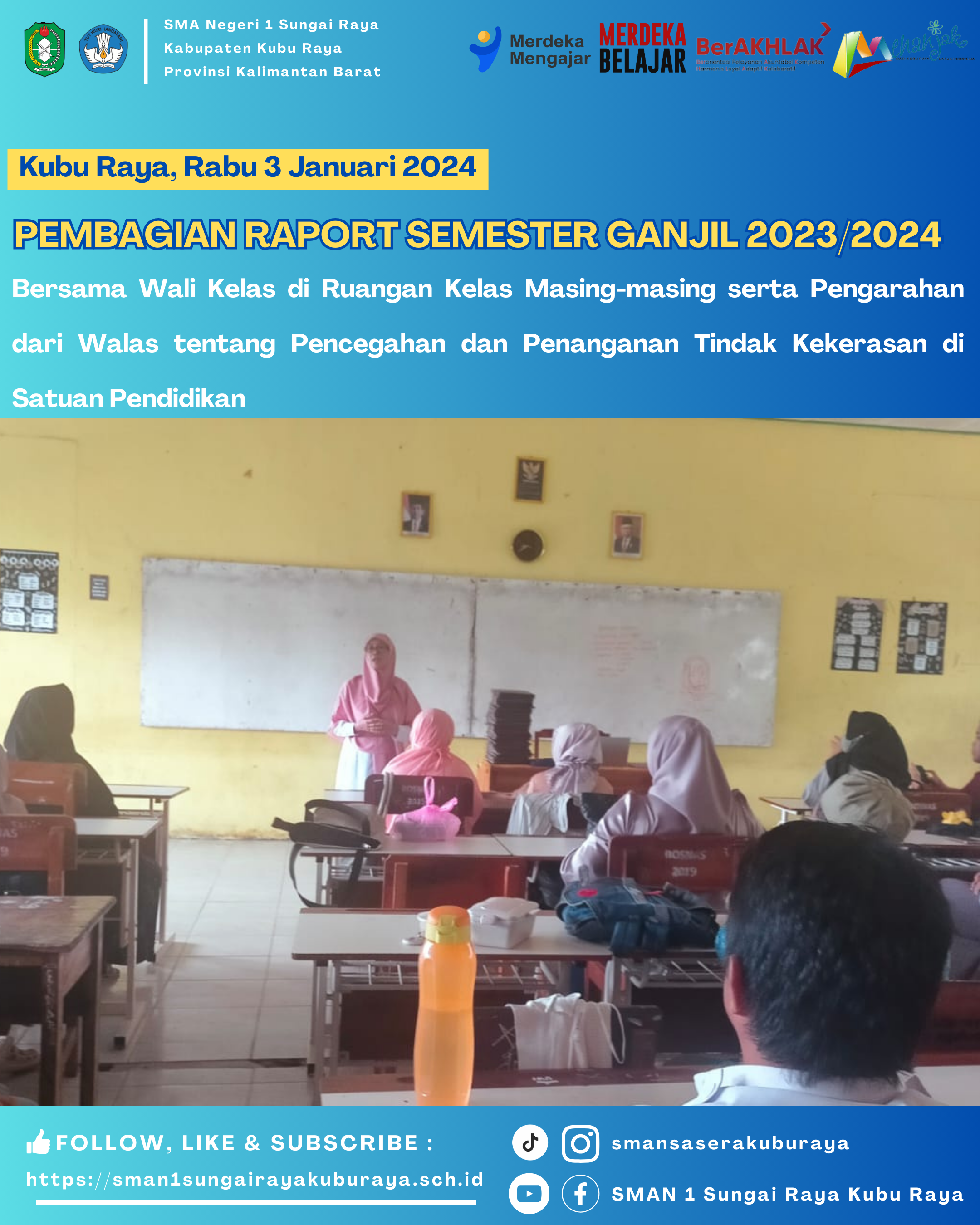 Kubu Raya, Rabu 3 Januari 2024 Sesi Pembagian Raport Siswa/siswi kelas X, XI dan XII MIA dan IIS oleh Wali Kelas Masing2 serta Pengarahan dari Walas ...