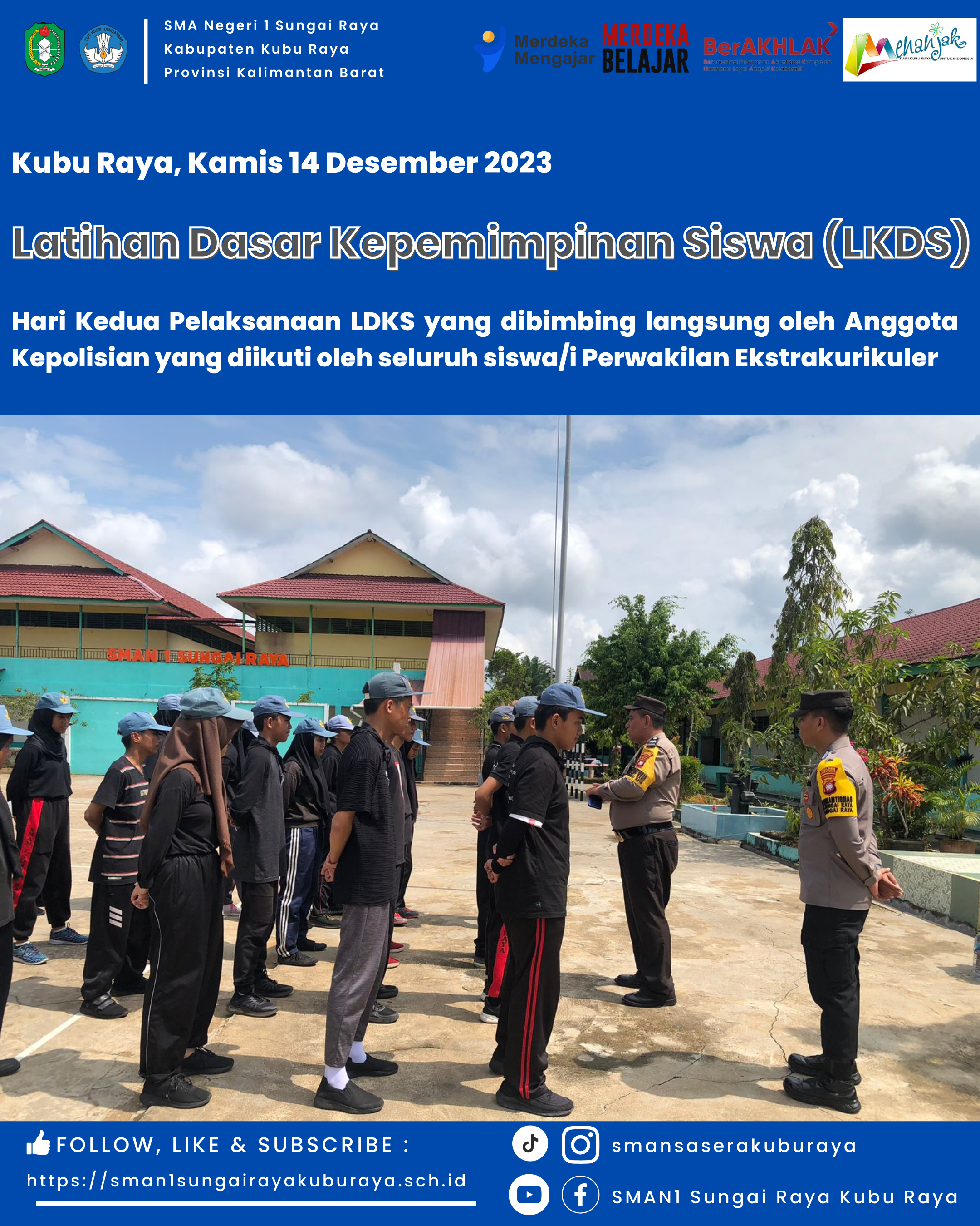 Kubu Raya, 14 Desember 2023 Hari Kedua Pelaksanaan Latihan Dasar Kepemimpinan Siswa (LKDS) yang dibimbing langsung oleh Anggota Kepolisian diikuti ol...