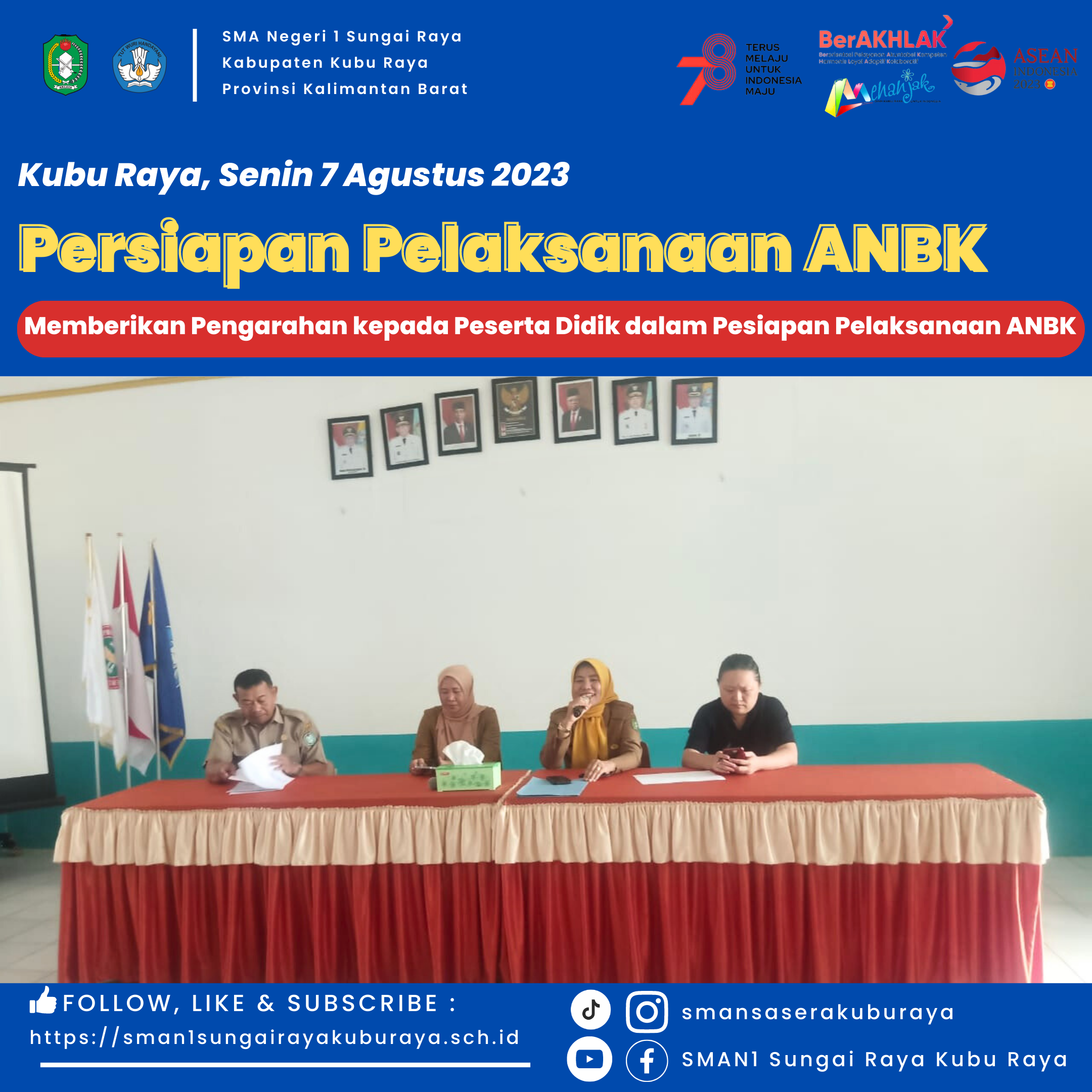 Kubu Raya, 7 Agustus 2023Pengarahan kepada Peserta Didik SMA Negeri 1 Sungai Raya Kubu Raya terhadap Persiapan Pelaksanaan ANBK yang dilaksanakan pda ...