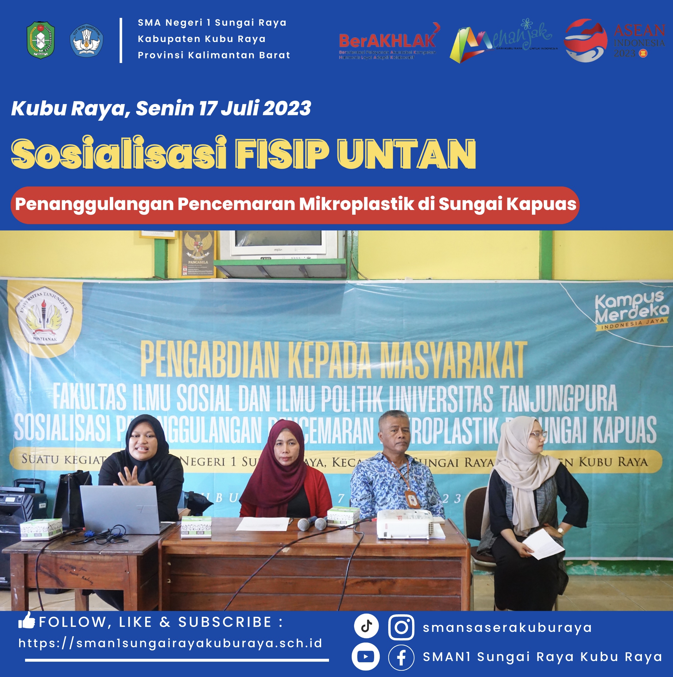 Sosialisasi yang dilakukan oleh Fakultas Ilmu Sosial dan Ilmu Politik dengan tema "Penanggulangan Pencemaran Mikroplastik di Sungai Kapuas" Tahun 20...