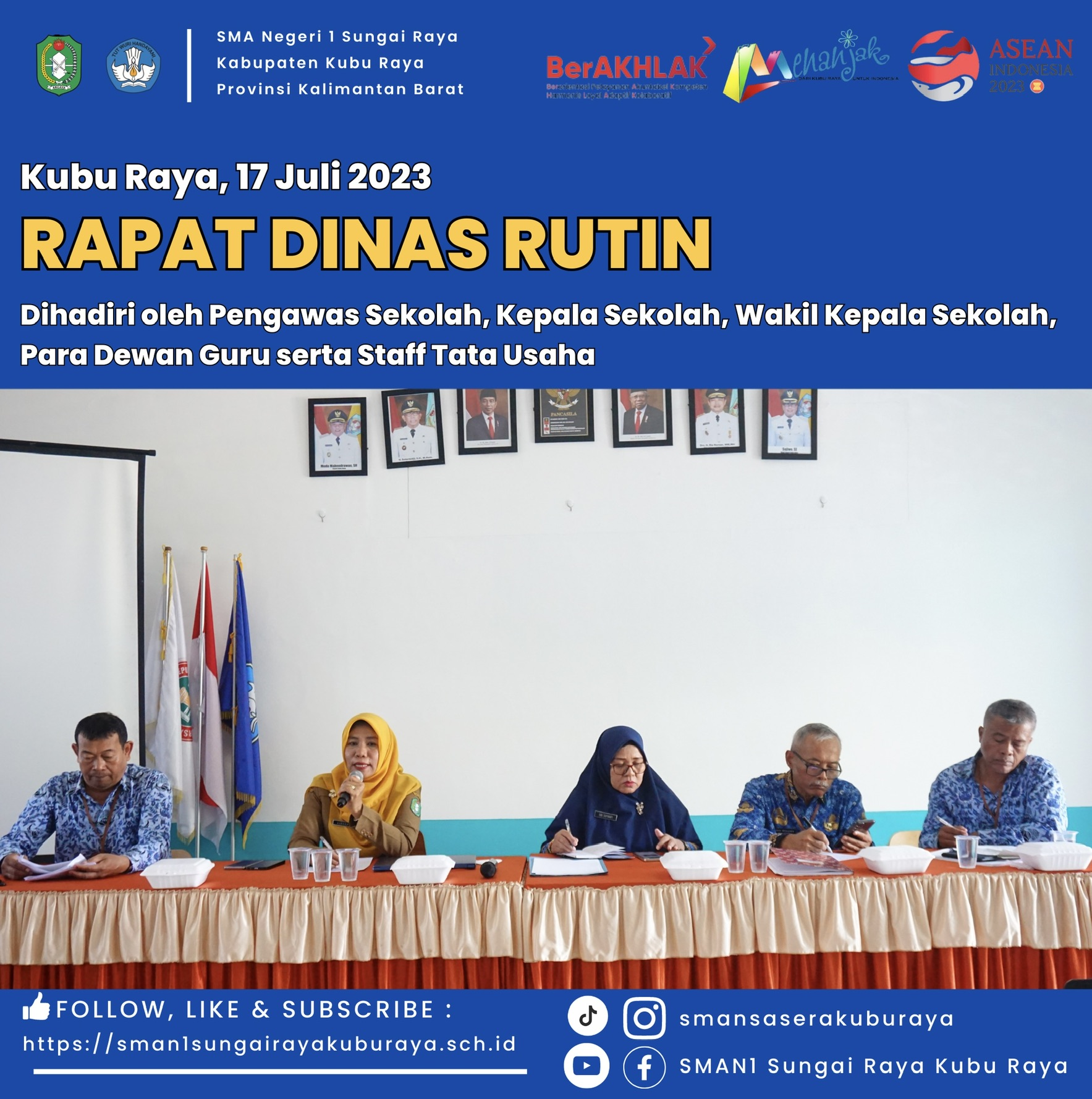 Rapat Dinas Rutin Agenda : Pembahasan dimulainya Tahun Ajaran Baru 2023/2024 dilaksanakan pada hari Senin, 17 Juli 2023 Pukul 10.15 - selesai.�...