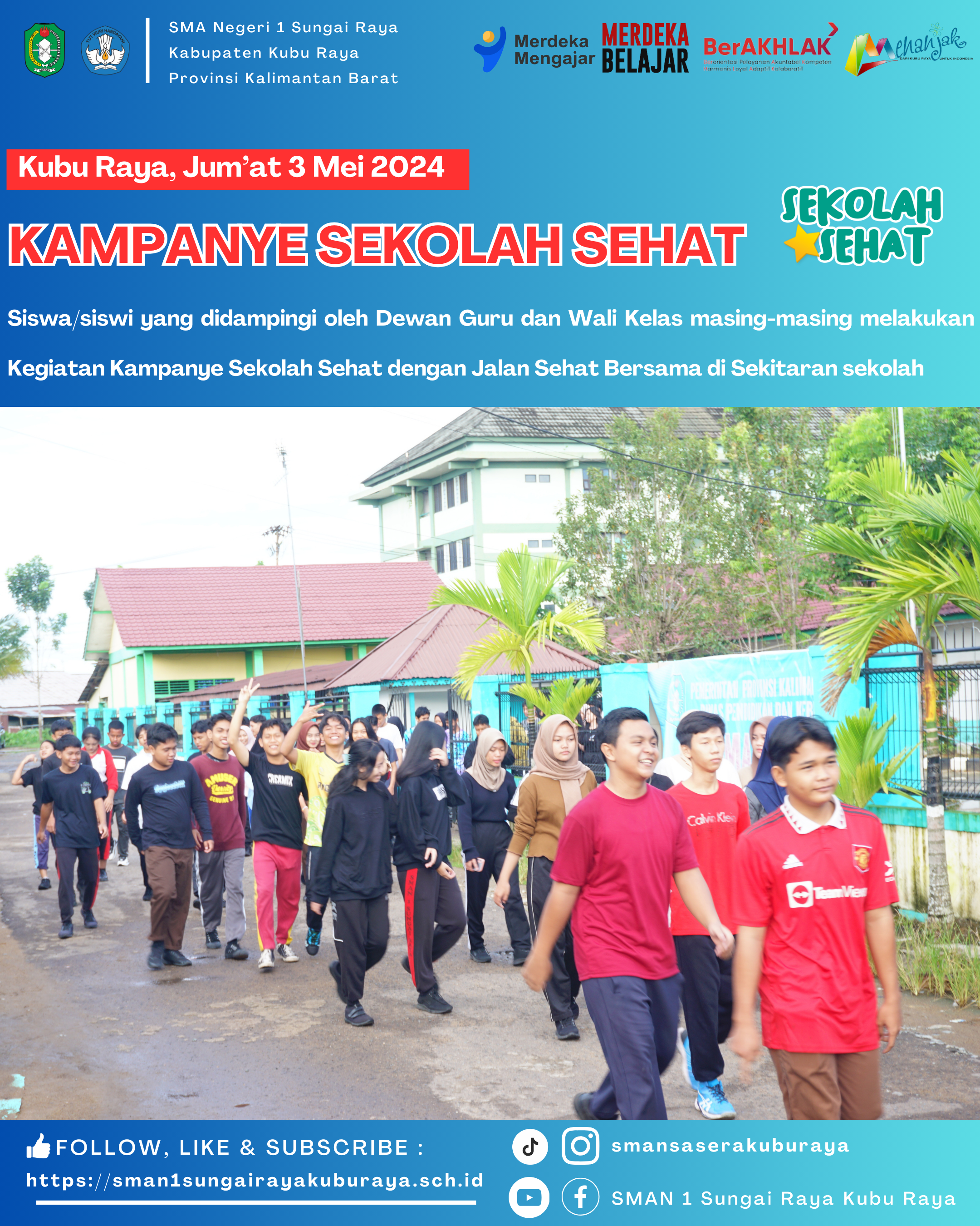 Kubu Raya, Jumat 3 Mei 2024 Berkenaan dengan Program Kampanye Sekolah Sehat Siswa/Siswi beserta Para Dewan Guru dan Staff SMA Negeri 1 Sungai Raya Ku...