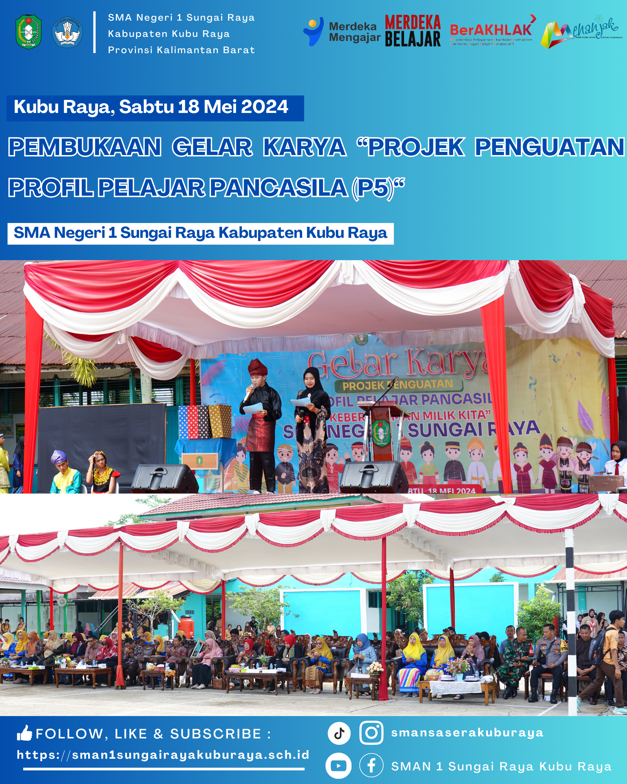 Kubu Raya, Sabtu 18 Mei 2024 Berkenaan dengan Pembukaan Acara Gelar Karya "Projek Penguatan Profil Pelajar Pancasila" SMA Negeri 1 Sungai Raya yang d...