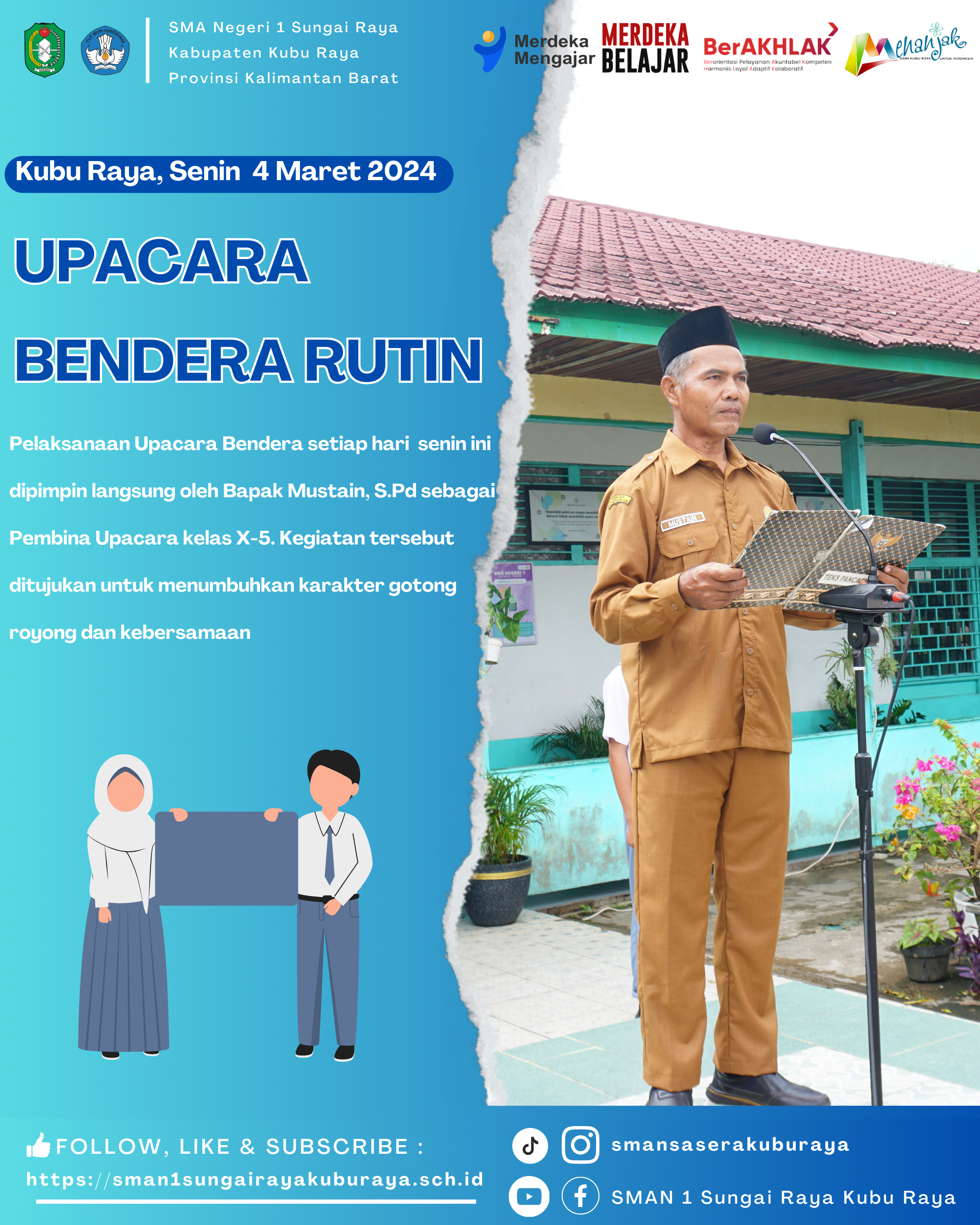Kubu Raya, Senin 4 Maret 2024 Upacara Bendera Rutin setiap Hari Senin Yang Dipimpin langsung oleh Bapak Mustain,S.Pd sebagai Pembina Upacara X-5 dan ...