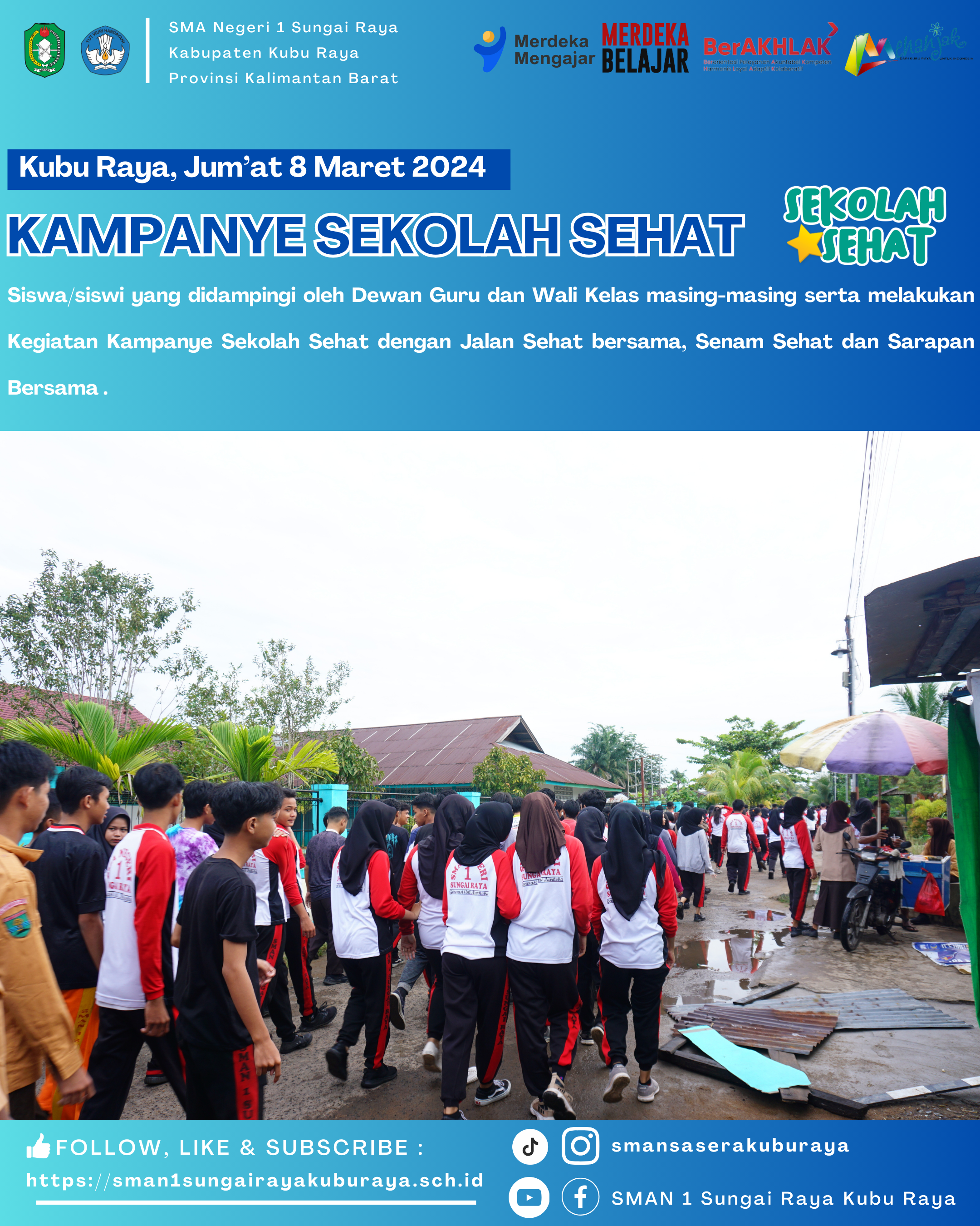 Kubu Raya, Jumat 8 Maret 2024 Berkenaan dengan Program Kampanye Sekolah Sehat Siswa/Siswi beserta Para Dewan Guru dan Staff Tata Usaha SMA Negeri 1 S...