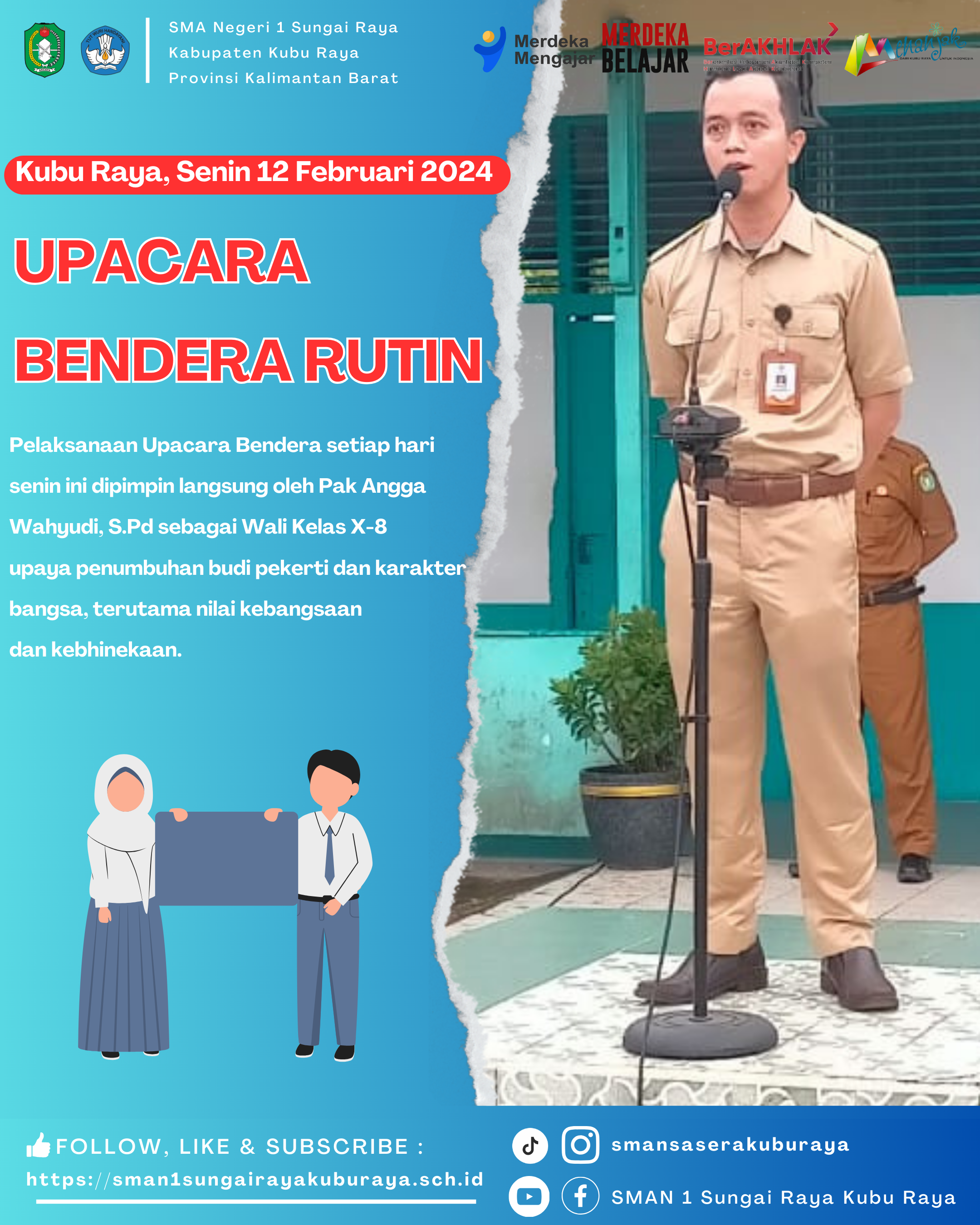 Kubu Raya, Senin 12 Februari 2024 Upacara Bendera Rutin setiap Hari Senin Yang Dipimpin langsung oleh Pak Angga Wahyudi, S.Pd sebagai Wali Kelas X-8�...