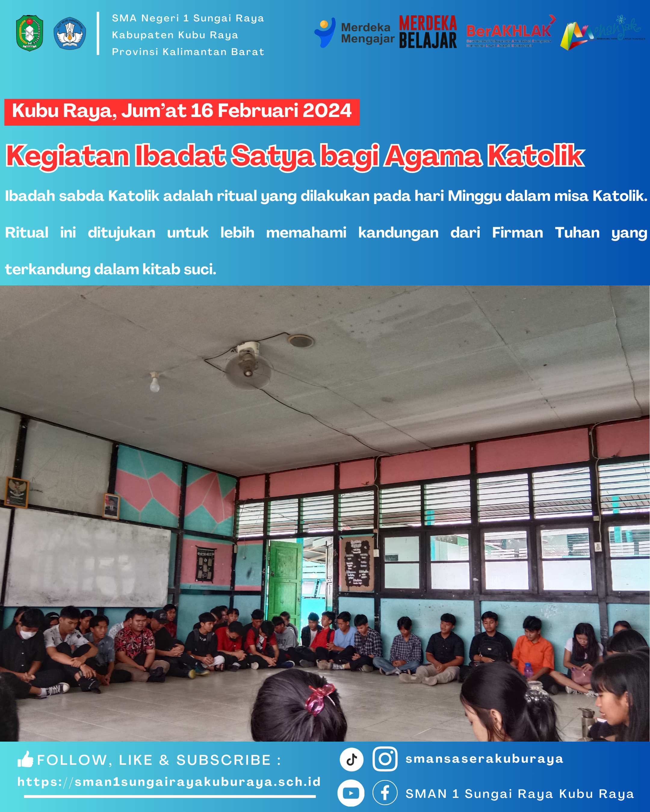 Kubu Raya, Jum'at 16 Februari 2024 Kegiatan Ibadat Satya bagi yang memeluk Agam Katolik diselenggarakan oleh Guru Pembina Agam Katolik Ibu Patrisia S...