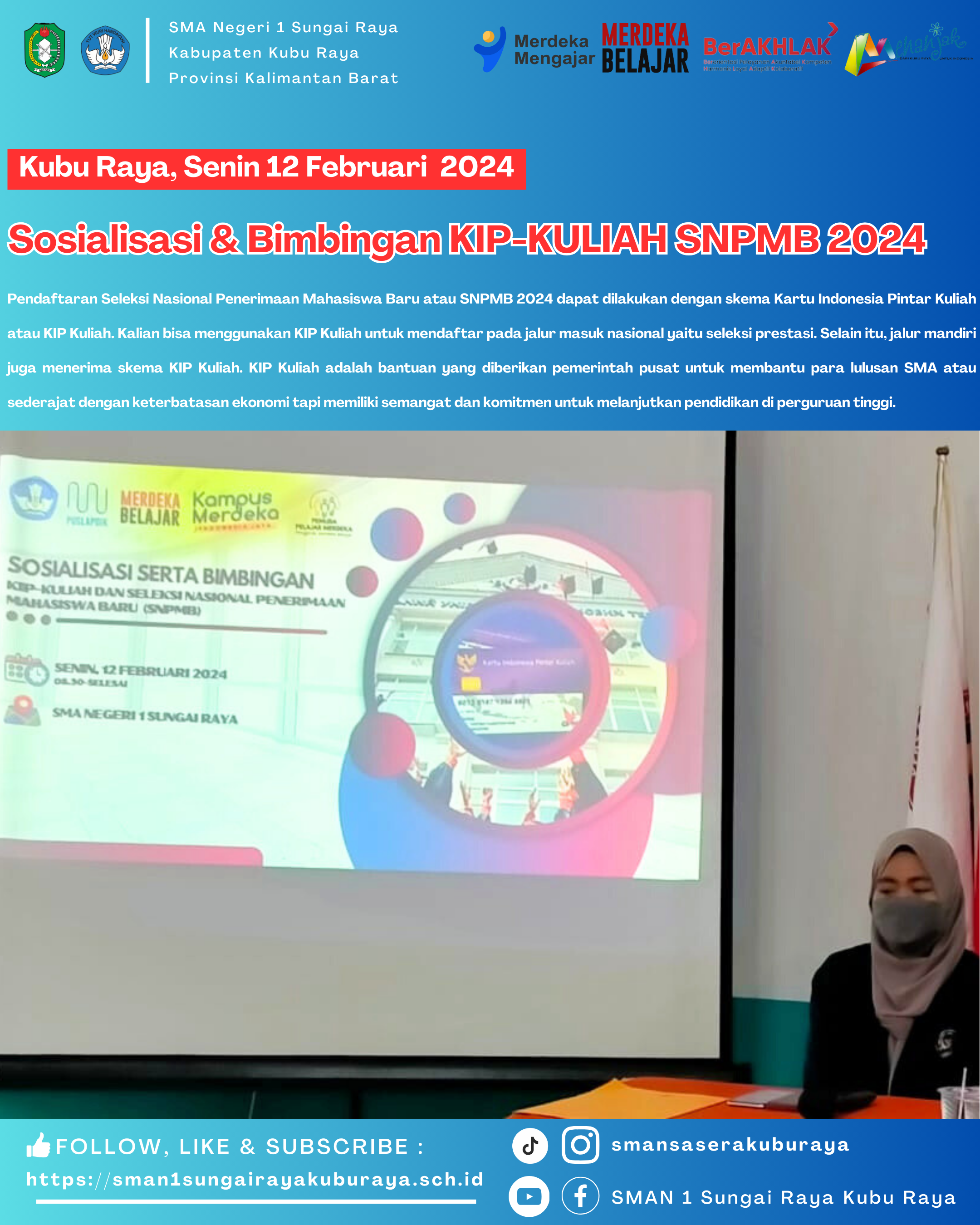 Sosialisasi dan Bimbingan Kartu Indonesia Pintar (KIP) Kuliah dalam Seleksi Nasional Penerimaan Mahasiswa Baru (SNPMB) Tahun 2024 bagi para siswa/sisw...