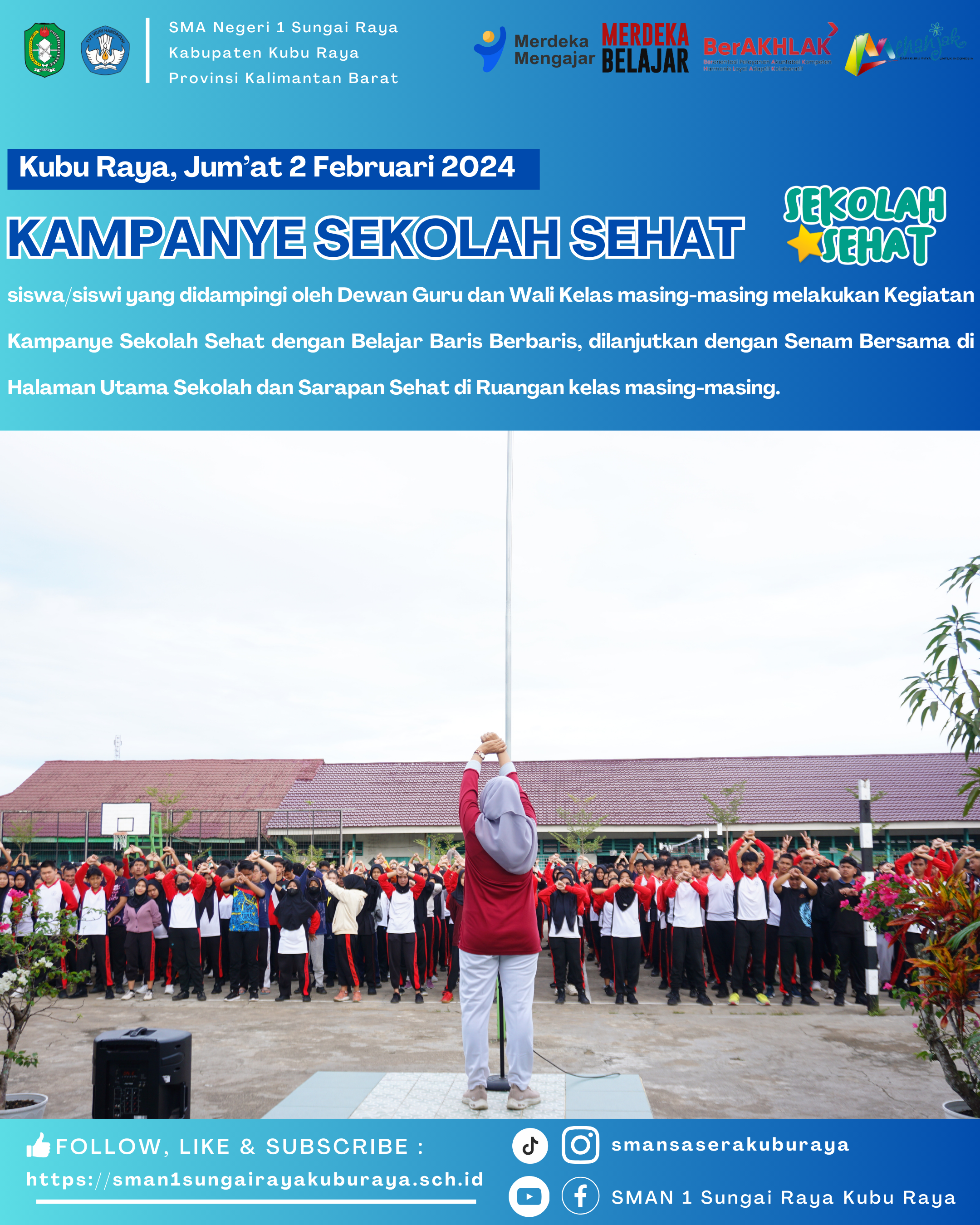 Kubu Raya, Jumat 2 Februari 2024 Berkenaan dengan Program Kampanye Sekolah Sehat (KSS) Siswa/siswi yang didampingi oleh Dewan Guru dan Wali Kelas mel...