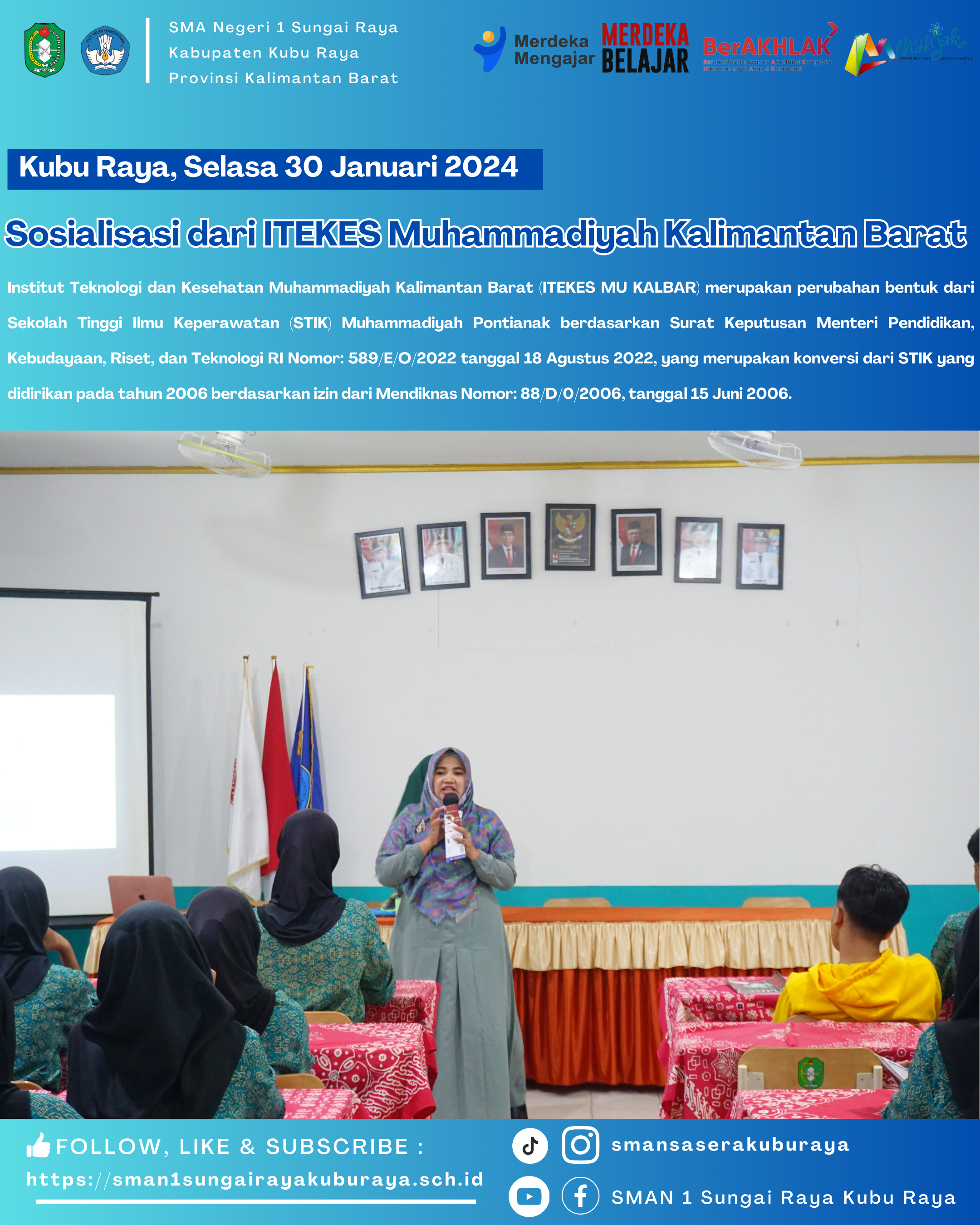 Sosialisasi yang dilakukan oleh "Institut Teknologi dan Kesehatan (ITEKES) Muhammadiyah Kalimantan Barat" bagi para siswa/siswi kelas XII MIA dan IIS ...