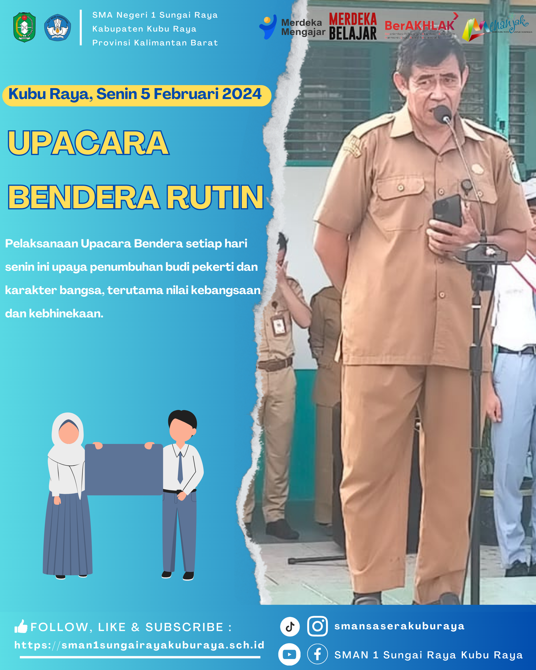 Kubu Raya, Senin 5 Februari 2024 Upacara Bendera Rutin setiap Hari Senin Yang Dipimpin langsung oleh Pak Lipus, S.Pd.K dan dihadiri oleh Siswa/siswi ...