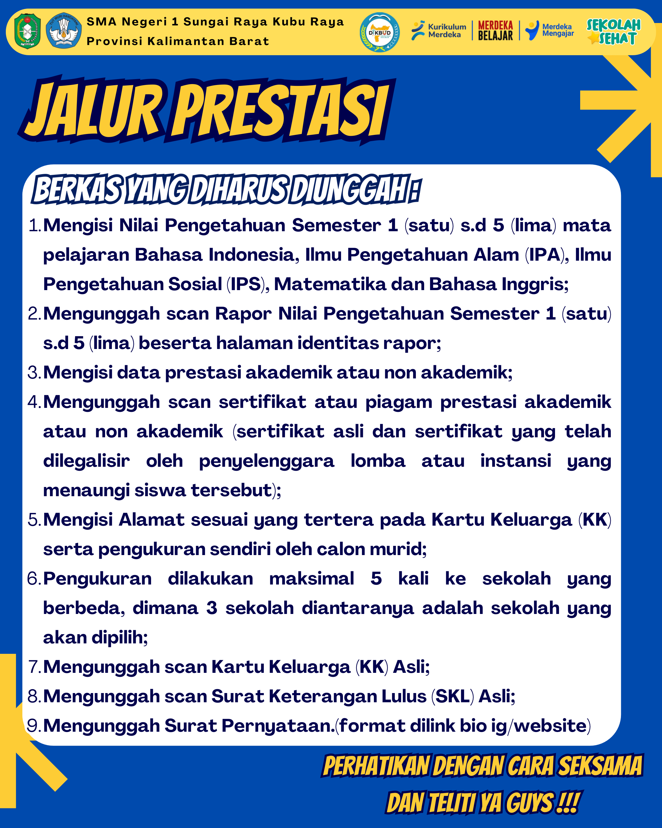 TELAH DIBUKA JALUR PRESTASI SPMB ONLINE SMAN 1 Sungai Raya Kab. Kubu Raya Tahun Pelajaran 2025/2026 !!!