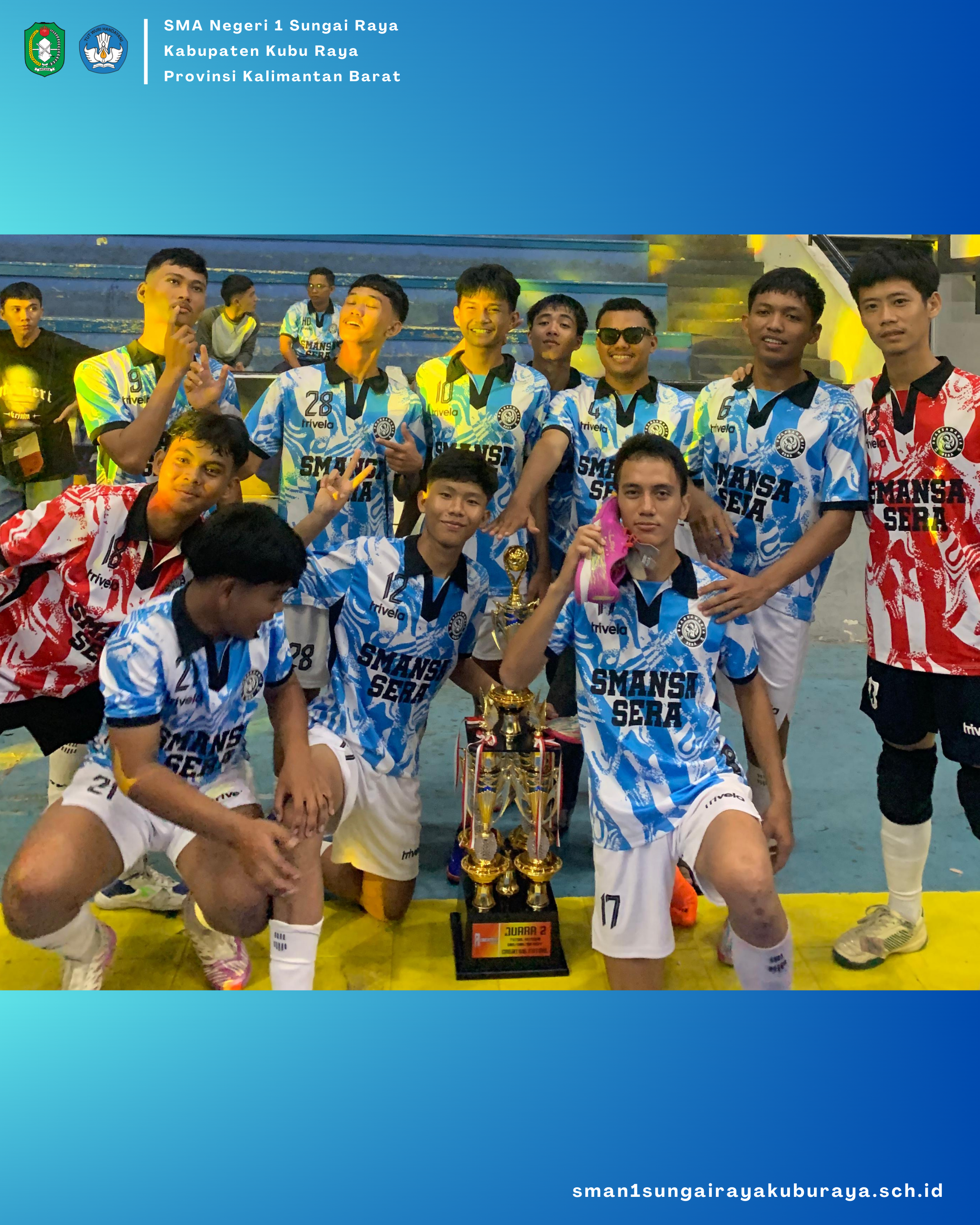 CONGRATULATIONS BOYS !!! Selamat Kepada TIM FUTSAL SMA Negeri 1 Sungai Raya yang telah membawa pulang Juara 2 Kategori SMA/Sederajat pada Kejuaraan Creative Futsal Pelajar Kalimantan Barat Tahun 2024 yang diselenggarakan oleh Askana Creative Production tanggal 1-14 September 2024 di GOR Pangsuma Pontianak, Kalimantan Barat. Terimakasih sudah membawa harum nama Smansasera, semoga dapat menjadi contoh yang baik bagi siswa/siswi SMA Negeri 1 Sungai Raya Kubu Raya dalam meraih prestasi setinggi mungkin dan tetap rendah hati.