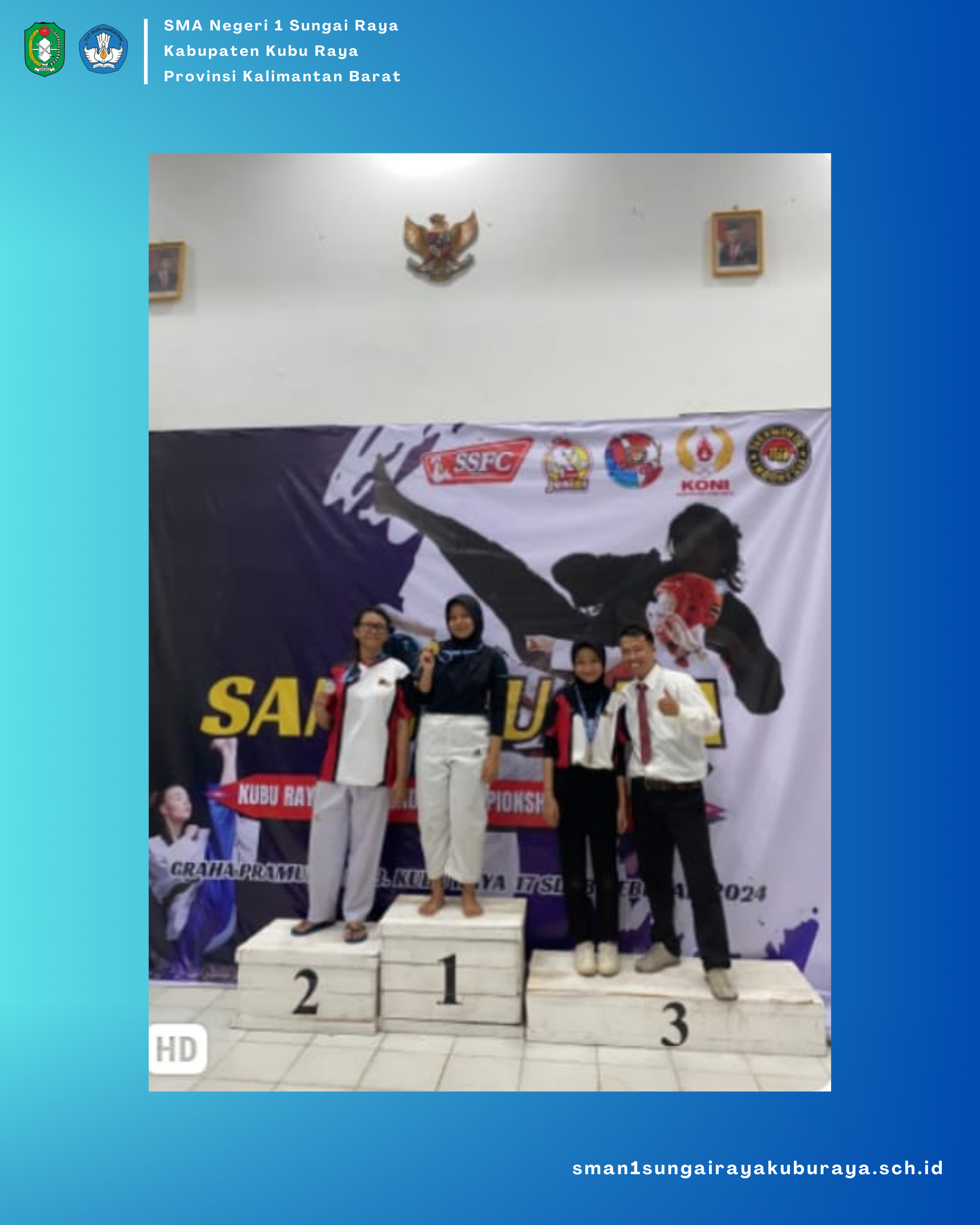 CONGRATULATIONS NILUH !!! Selamat Kepada Niluh Made Sri Setia Utama salah satu siswa/siswi terbaik SMA Negeri 1 Sungai Raya yang telah membawa pulang Juara 2 Medali Perak Kejuaraan Kubu Raya Taekwondo Championship Kategori Turnamen Under 59kg pada Tanggal 16-18 Februari 2024 di Graha Pramuka Jl.Ahmad Yani yang berjumlah 209 peserta.