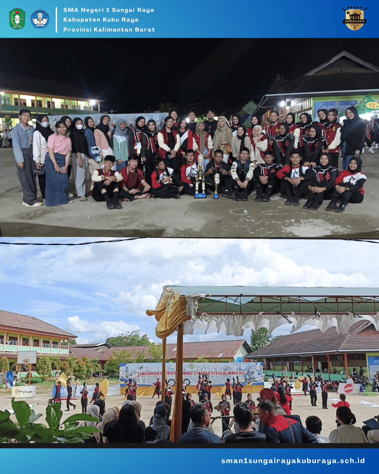 CONGRATULATIONS TEAM !!! Selamat Kepada Marching Band "Ardalaga" SMA Negeri 1 Sungai Raya @ardalaga.ard yang telah membawa pulang Juara 2 Tingkat Umum se-Kalimantan Barat dalam Unorides Open Drumband Competition (UNOBC) tanggal 1-2 Februari 2025 yang diselenggarakan di SMP Negeri 1 Sungai Raya Kubu Raya. Terimakasih sudah membawa harum nama Smansasera, semoga dapat menjadi contoh yang baik bagi siswa/siswi SMA Negeri 1 Sungai Raya Kubu Raya dalam meraih prestasi setinggi mungkin dan tetap rendah hati.