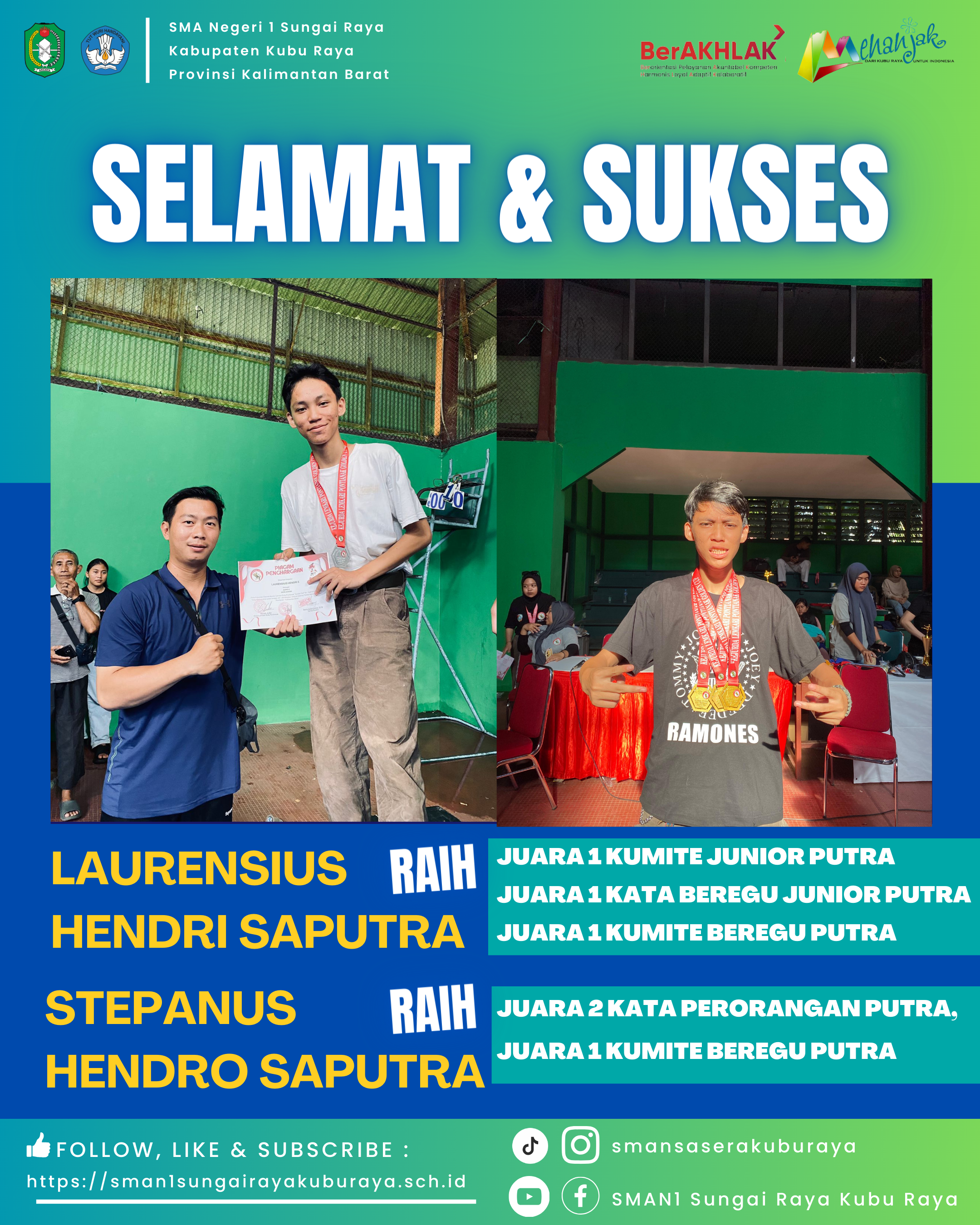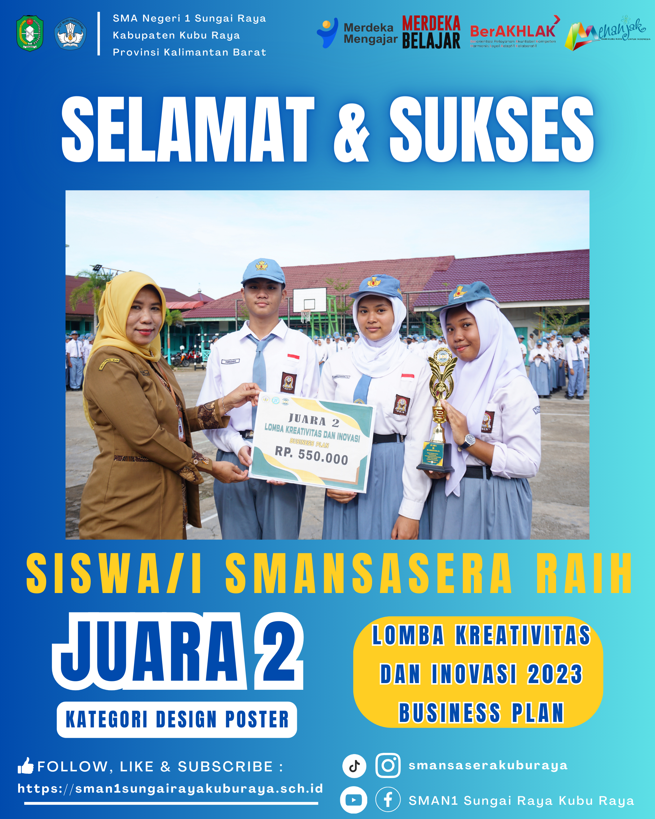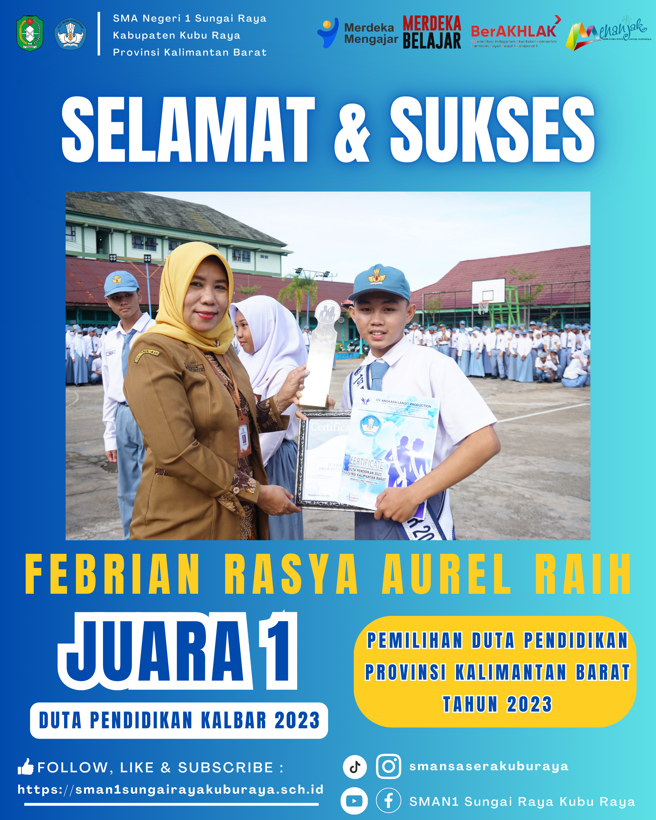 SELAMAT DAN SUKSES !!! Selamat Kepada Aidil Siswa Kelas XII IIS 6 SMA Negeri 1 Sungai Raya @aidil_jk_ yang telah membawa pulang Duta Lanceng Favorit...