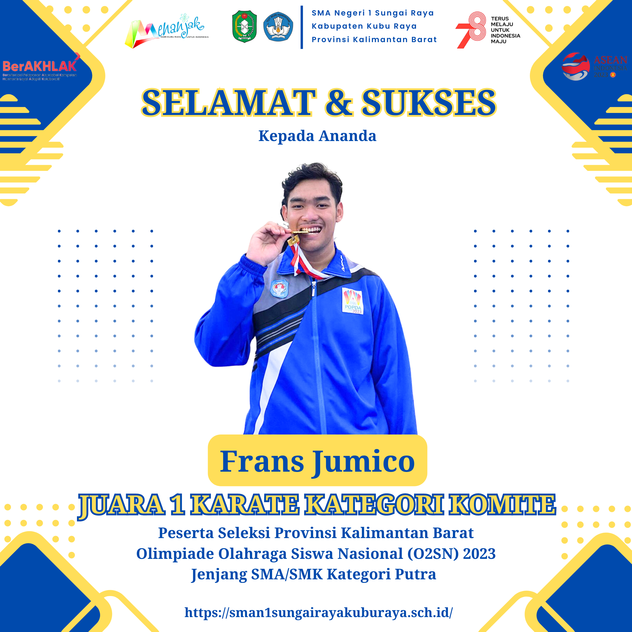 Kamis, 10 Agustus 2023 09:19 WIB Juara 1 Karate Kategori Komite Tingkat Provinsi