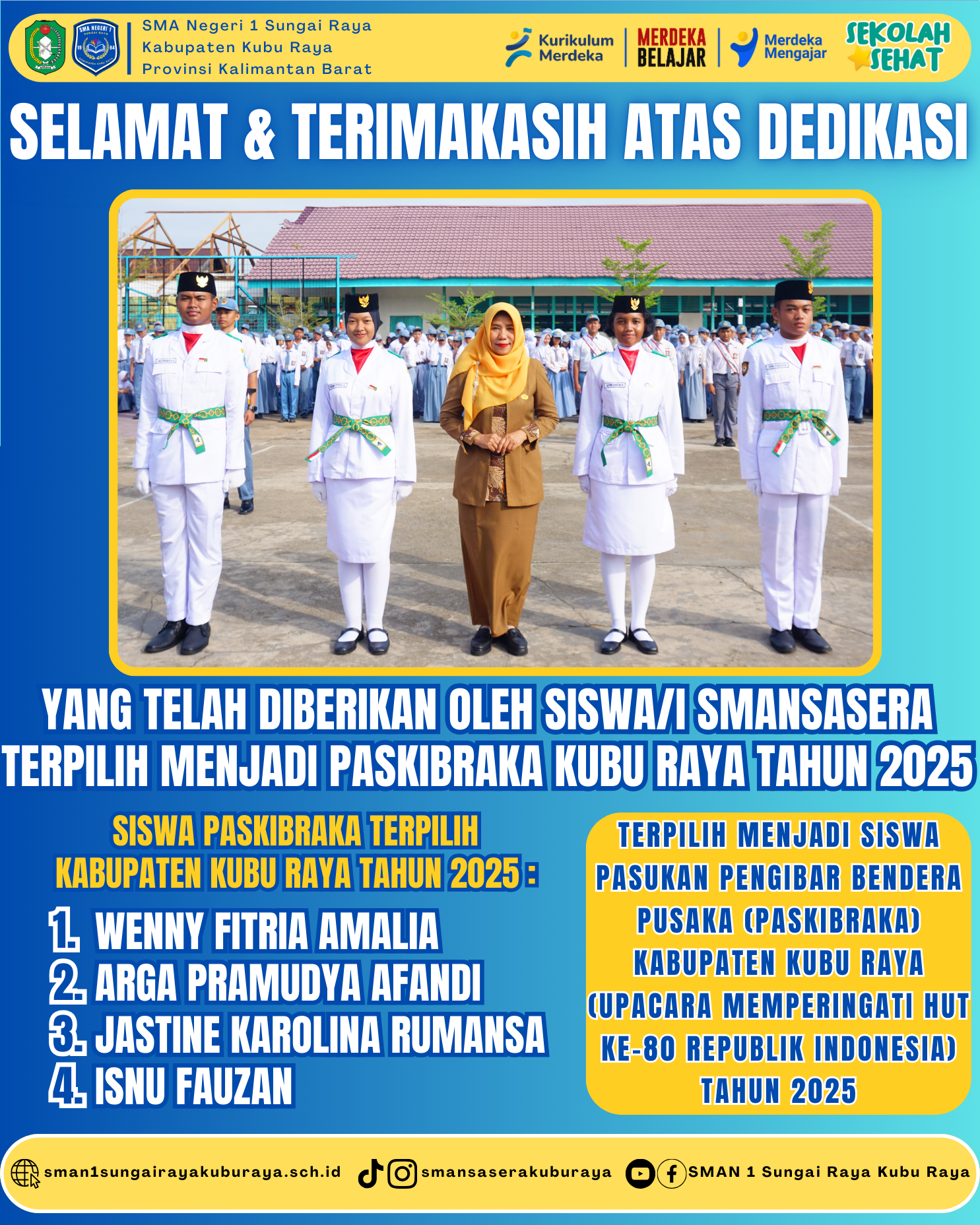 SELAMAT & TERIMAKASIHH !!! Terimakasih Atas Dedikasinya Kepada Siswa/Siswi SMAN 1 Sungai Raya Kubu Raya yang Telah Terpilih menjadi Siswa Pasukan Peng...