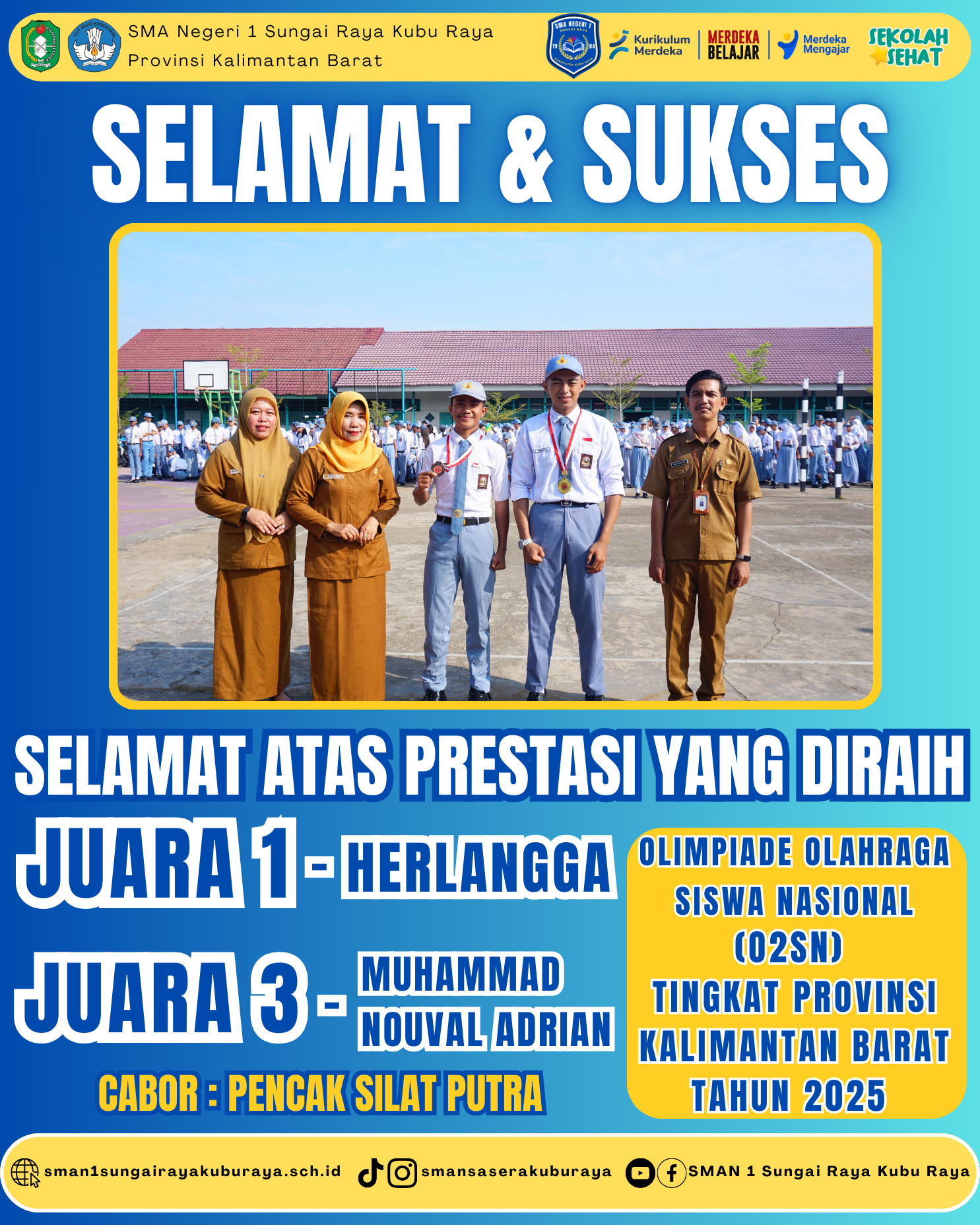 SELAMAT BANGGA KALIAN GUYSS!!! Selamat Kepada Siswa SMA Negeri 1 Sungai Raya yang telah membawa pulang Juara 1 dan Juara 3 dalam Bidang Pencak Silat P...