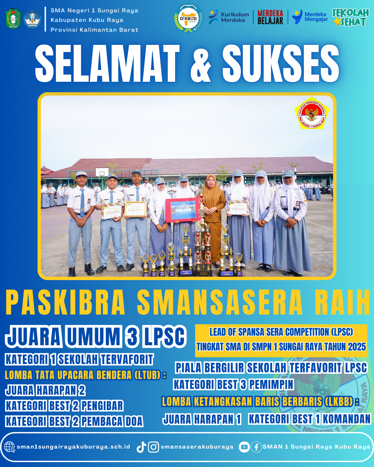 CONGRATULATIONS PROUD OF YOU GUYSS !!! Selamat Kepada TIM Paskibra "Tribuana Jayasakti" SMA Negeri 1 Sungai Raya @paskibrasmansasera yang telah memb...