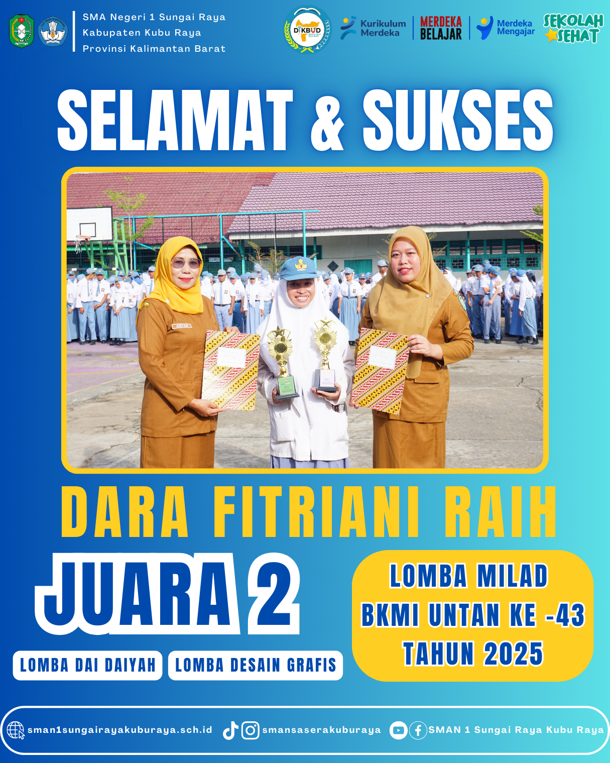 Selasa, 4 Maret 2025 10:02 WIB Juara 2 Lomba Desain Grafis dan Juara 2 Lomba Dai Daiyah Tingkat SMA/Sederajat