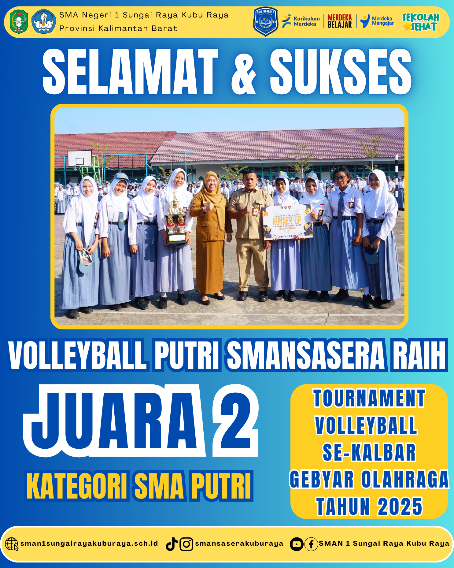 CONGRATULATIONS GIRLSS !!! Selamat Kepada TIM VOLLEYBALL PUTRI SMA Negeri 1 Sungai Raya @volleyball_smansasera1 yang telah membawa pulang Juara 2 (R...