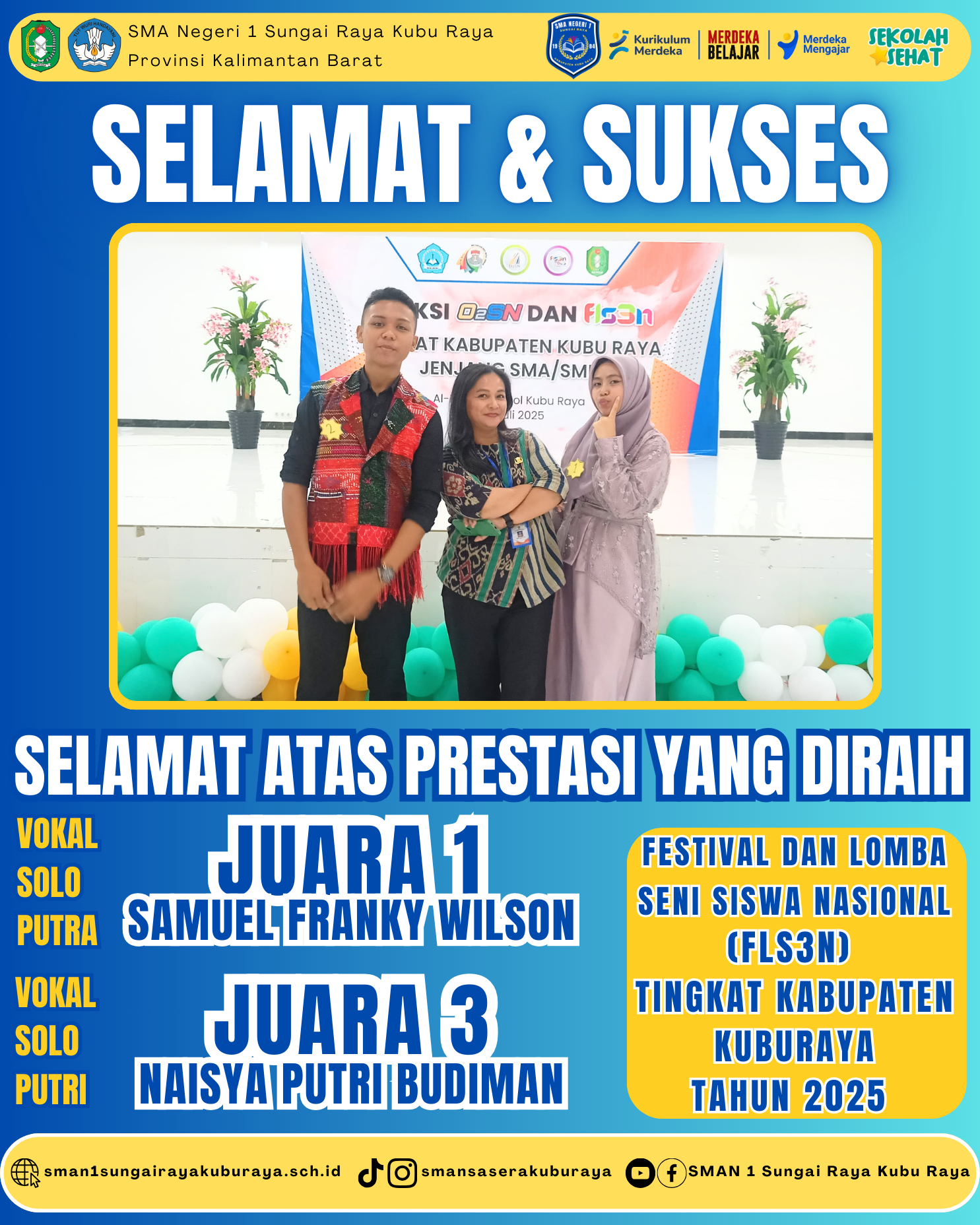 CONGRATULATIONS SAMUEL DAN NAISYA !!! Selamat Kepada Siswa/Siswa SMA Negeri 1 Sungai Raya yang telah membawa pulang Juara 1 dan Juara 3 dalam Bidang L...