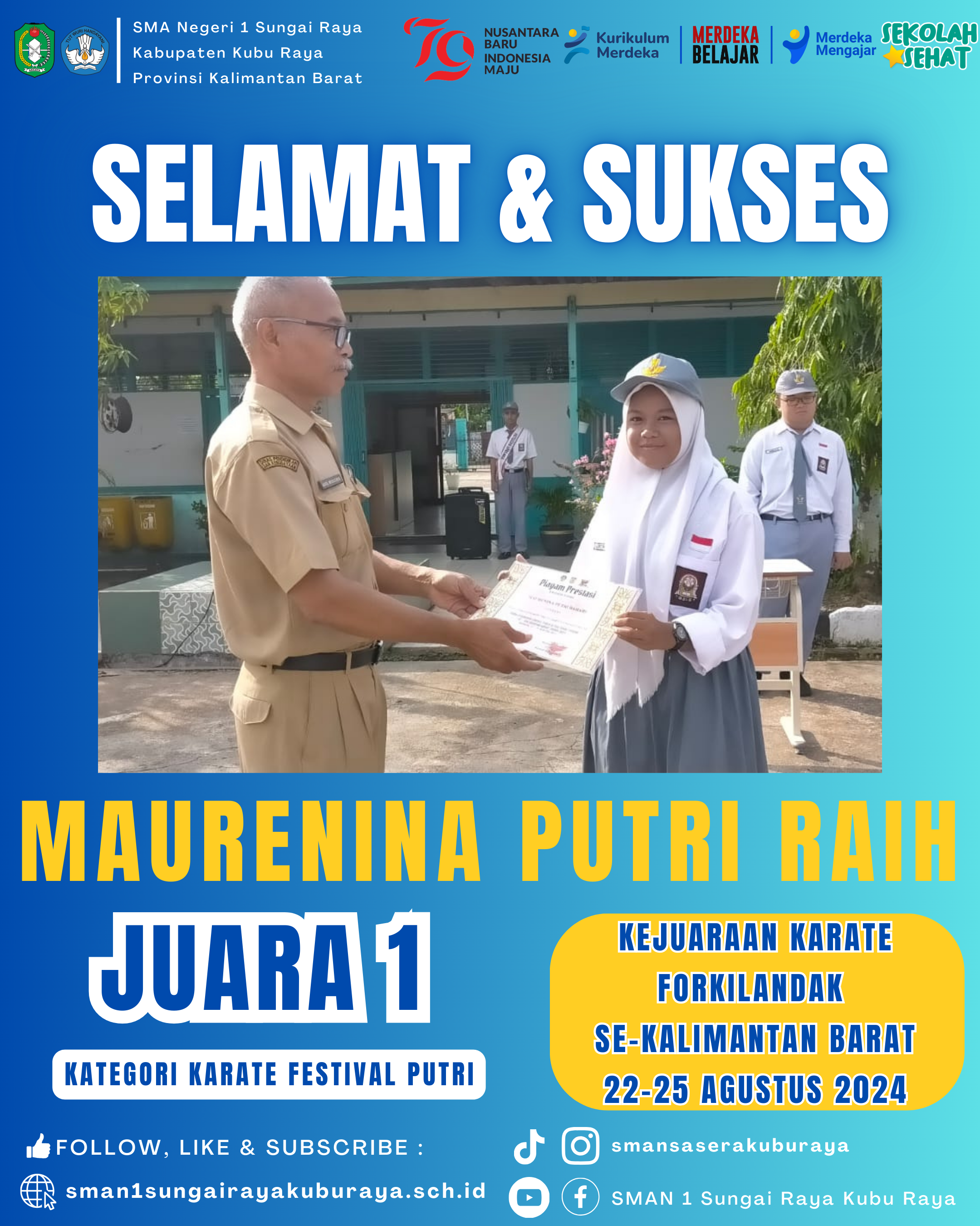 CONGRATULATIONS PUTRI !!! Selamat Kepada "Maurenina Putri Bahari" @ventagesgrilss_ kelas X5 @tenfive_smansasera SMA Negeri 1 Sungai Raya yang tela...