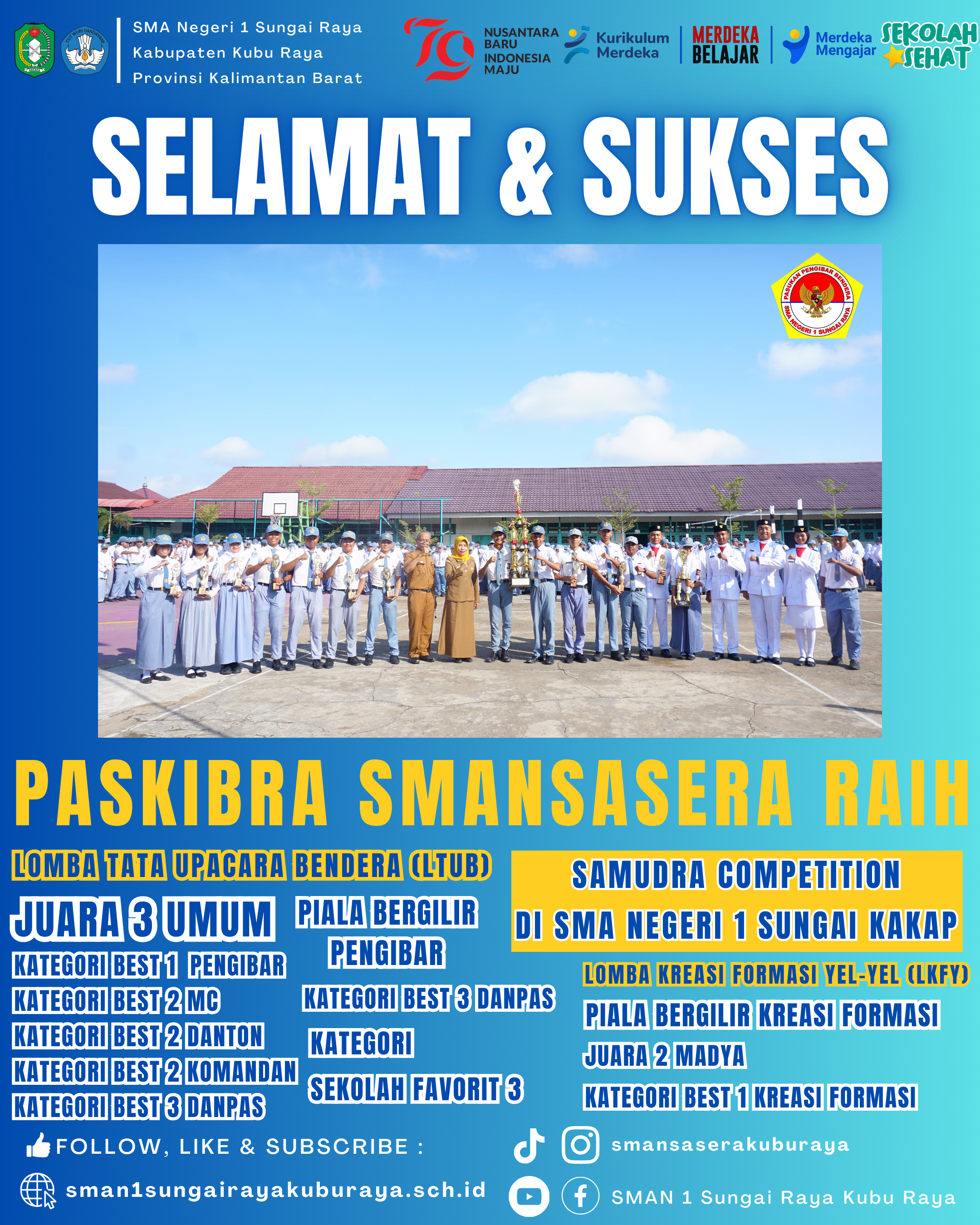 CONGRATULATIONS !!! SALAM BENDERA 🇮🇩 Selamat Kepada Ekskul PASKIBRA "Tribuana Jayasakti" SMA Negeri 1 Sungai Raya @paskibrasmansasera yang tel...