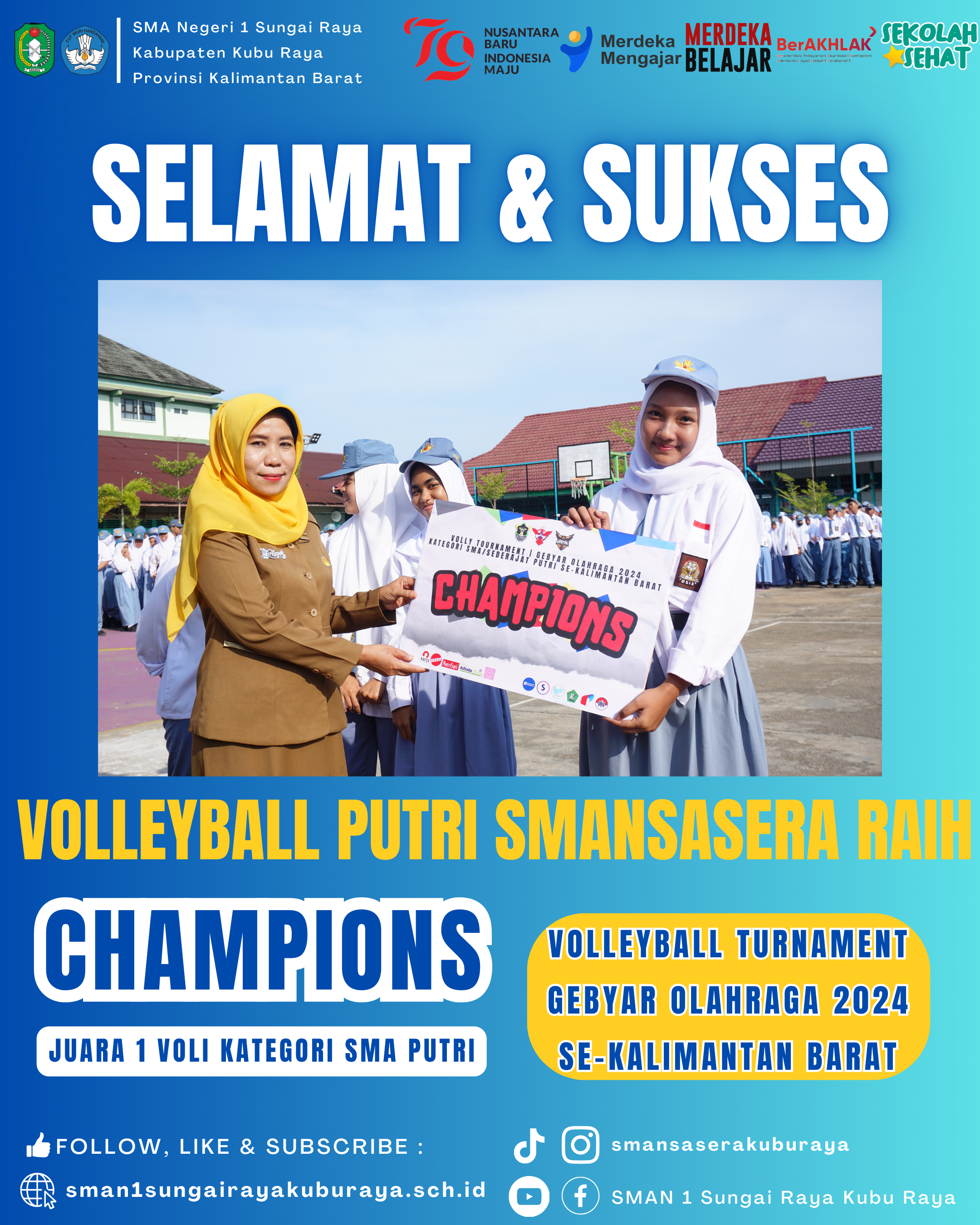 CHAMPIONSSSSS !!! Congrats Girlss , Selamat Kepada Tim Volleyball Putri SMA Negeri 1 Sungai Raya @volleyball_smansasera1 yang telah membawa pulang J...