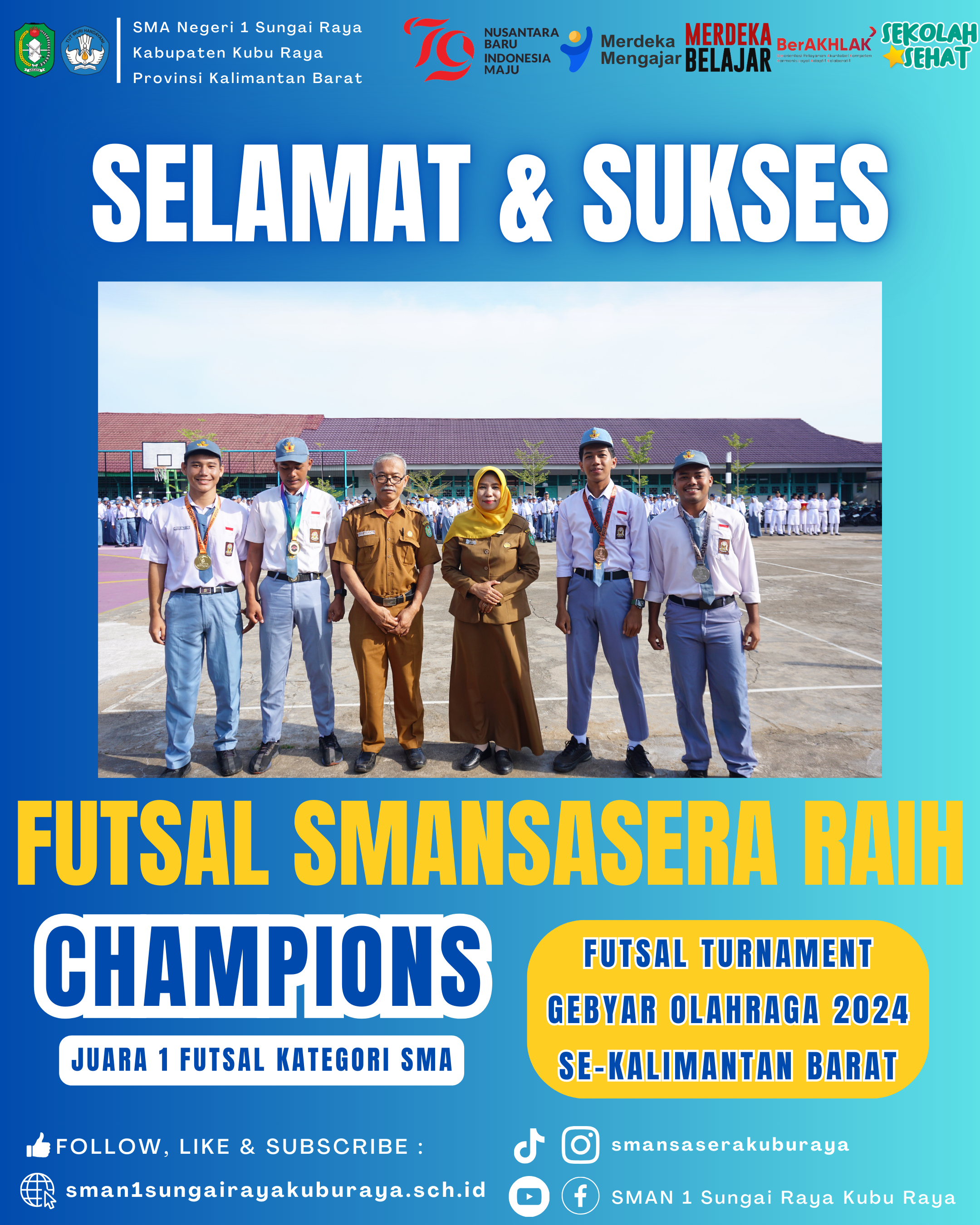 CHAMPIONSSS BOYSSS!!! Selamat Kepada Tim Futsal SMA Negeri 1 Sungai Raya @smansaserafans @smansa.mania_sera yang telah membawa pulang Juara 1 pa...