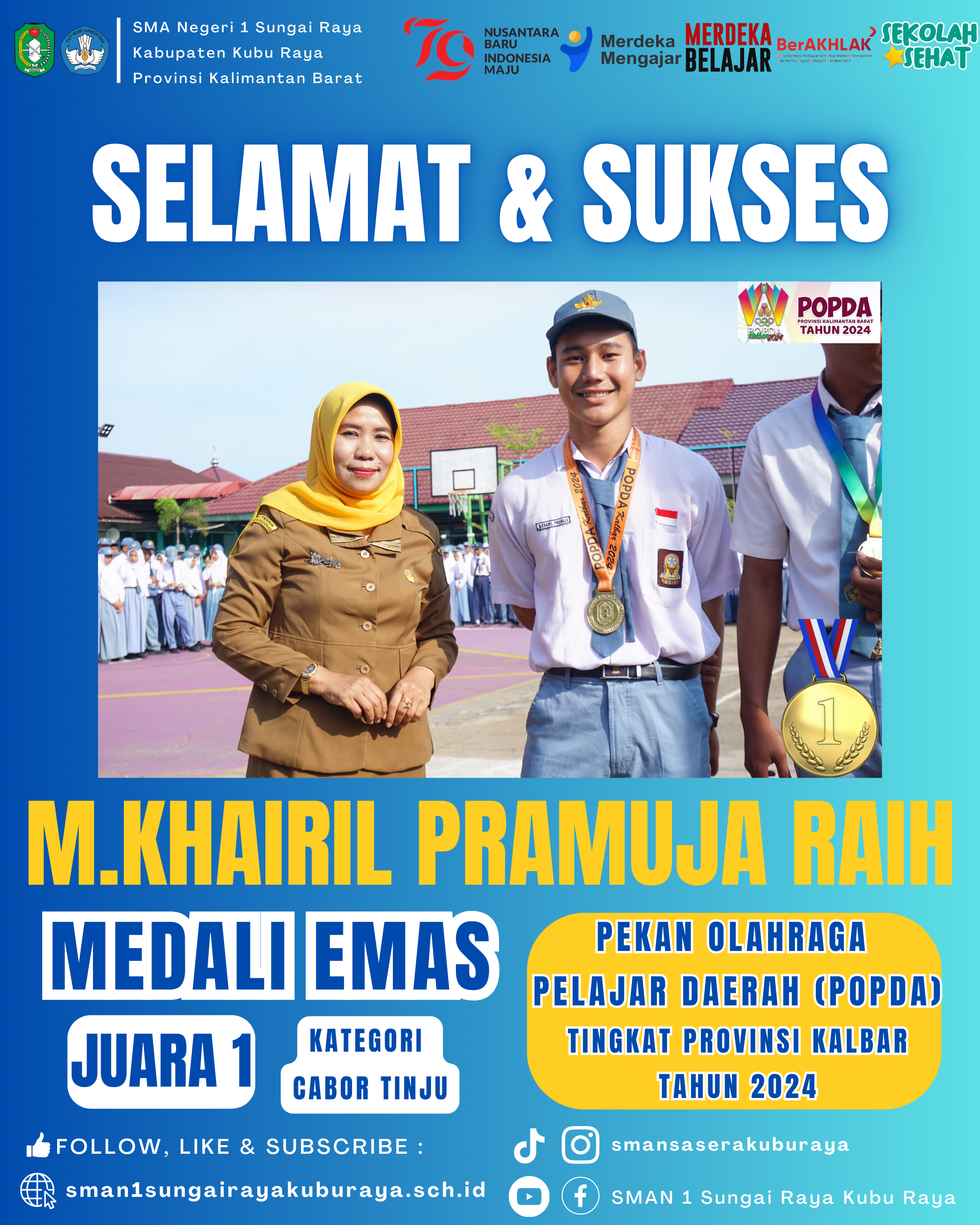 CONGRATULATIONS KHAIRIL !!! Selamat Kepada M.Khairil Pramuja Perwakilan Siswa SMA Negeri 1 Sungai Raya yang telah membawa pulang Medali Emas 🥇(Juar...